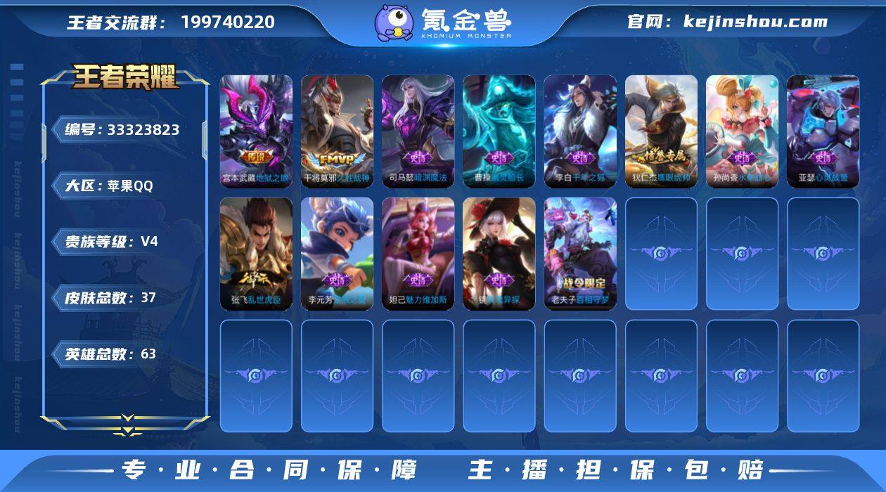 HXX2050宫本武藏地狱之眼-苹果Q-V4-永恒钻石II段位-63英雄-37皮肤-2传说-14史诗
