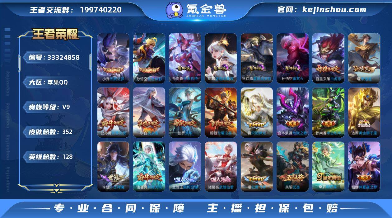 【精选精氪号·三个金标·全息碎影·天鹅之梦·启示之音·淬星耀世·李逍遥·飞鸢探春·兰陵王默契交锋·祈雪灵祝·时雨天司·炽阳神光·启明星使·武圣·太华·白虎志·永曜之星·武陵仙君·凤求凰·可二次】YXw24154-苹果Q-128英雄-352皮肤-11王者印记-300铭文-贵族积分11w【贵族9】【2典藏·4星传说·29传说·1天幕·5按键】【因赛季更新游戏段付以上号为准!】 【英雄全皮】:猪八戒全皮 【荣耀典藏】:孙悟空全息碎影,小乔天鹅之梦 【星元皮肤】:狄仁杰星际治安官,孙尚香未来机甲,孙悟空幽冥火,貂蝉金色仲夏夜 【天幕】:共赏芳华天幕 【传说皮肤】:桑启鸣野蒿,露娜启示之音,赵云淬星耀世,曜李逍遥 ,李元芳飞鸢探春,兰陵王默契交锋,公孙离祈雪灵祝,诸葛亮时雨天司,镜炽阳神光,虞姬启明星使,关羽武圣,曜云鹰飞将,李信一念神魔,伽罗太华,貂蝉猫影幻舞,干将莫邪久胜战神,虞姬云霓雀翎,达摩黄金狮子座,百里玄策白虎志,花木兰冠军飞将,后羿黄金射手座,杨戬永曜之星,诸葛亮武陵仙君,貂蝉仲夏夜之梦,李白凤求凰,孙尚香末日机甲,宫本武藏地狱之眼,孙悟空地狱火,狄仁杰超时空战士 【限定皮肤】:姜子牙天穹之誓,狄仁杰阴阳师,赵云皇家上将,赵云引擎之心,赵云龙胆,...
