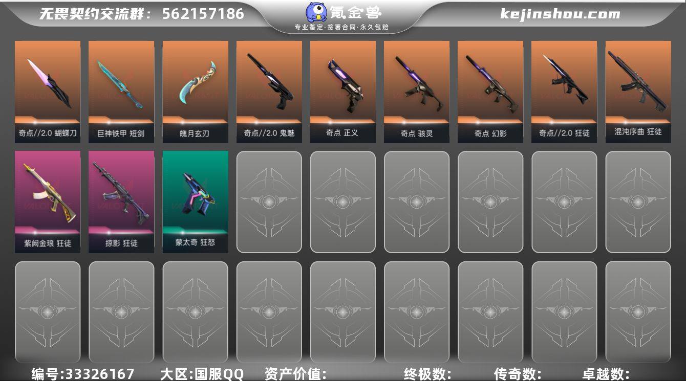 Q194475 【奇点全家桶 特效天花板】(奇点2.0套装)无畏契约/等级291/段位未定级/英雄28/皮肤35/资产27960/已使用R点635/剩余R点515/奇点//2.0-狂徒,奇点//2.0-鬼魅,奇点//2.0-蝴蝶刀,巨神铁甲-短剑,魄月玄刃,混沌序曲-狂徒,奇点-幻影,紫阙金琅-狂徒,掠影-狂徒,奇点-骇灵,奇点-正义