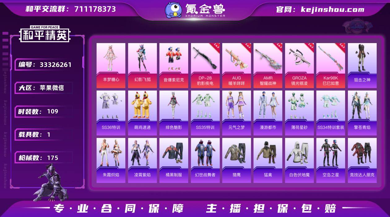 【满级AMR智耀战神3粉装5特效枪1载具】 苹果V区-47974热力值-109套装-175枪皮 【1载具】 玛莎拉蒂Ghibli(粉)【1稀有】 Mark.06蓝螳螂【3粉装】 音爆索尼克 幻影飞狐 角色-羊梦糖心【5特效枪】 AMR-智耀战神(7级) Kar98K-巳巳如意(5级) AUG-暖羊咩咩(5级) GROZA-镜光银凌(5级) DP-28-豹影疾电(5级)【167热门】 M762-风花雪月 白色伏地魔 SS27特训 SS26特训 SS25特训 SS24特训 SS23特训 SS22特训 SCAR-L-玉兔迎春 GROZA-田园牧歌 M762-天降萌叽 M762-彩虹符号 Mk47-乌木金纹 UZI-娇憨猪猪 UMP45-蓝色火焰 UMP45-炫光之旅 DBS-彩虹符号 M249-彩虹符号 MG3-幻世战舞者 AKM-虎虎生威 M416-蓝色火焰 M762-镭射皇者 长空猛禽 特训学院 青涩时光 青年教官 牛气冲天 霓虹街区 妙红点点 猎鹰 蓝色运动 橘黑制服 竞技达人朋克 黄色运动 黄色伏地魔 红色运动 黑色伏地魔 风暴特警 粉红小猪 M24-奇异狩猎者 M762-奇异狩猎者 SCAR-L-小狗蛇点点 海琴烟 AC-VAL-玩趣呆呆 顶瓜瓜 M249-无面战甲 M416-魔童闹海 敖闰 冰河战士 MG-36-薄荷星砂 恋语绒绒 SS34特训 漫游都市 朱霞炽焰 蜜獾-鸡智如我 S1897-荧海星豚 星影赞美诗 AWM-天降萌叽 大橘大利 彩虹兔 SS19特训 SS20特训 SS21特训 凌霄紫焰...