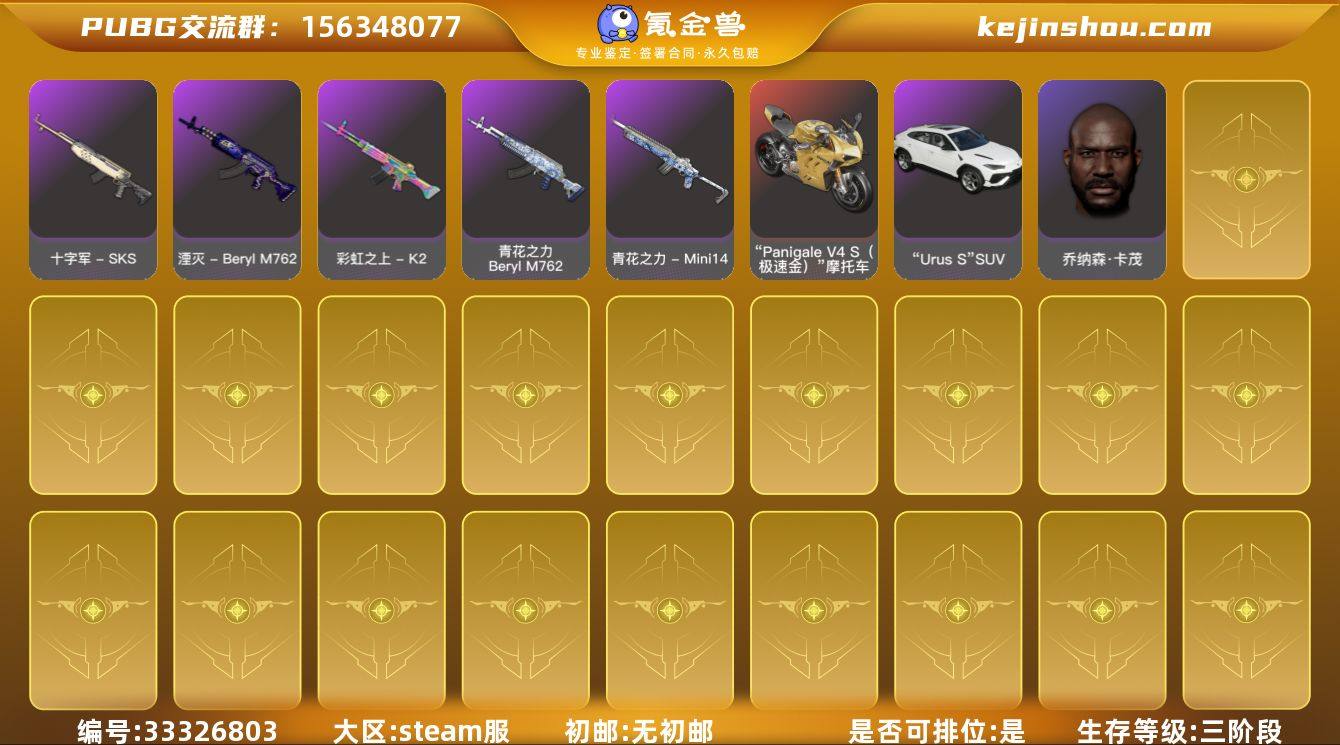 GJD13805 生存500级可排位/9级妖魔之触-ACE32/2级时空使者-M416/1级烈日灼烧-S1897/杜卡迪极速金/兰博基尼suv/黄色烟枪/翡翠色烟雾弹/黑鬼/丸子头/脏辫/拉风龙-风华套装/拉风龙-勇往套装/粉色电磁包/ 0BFPOF号 白银IV, 生存等级1187, 名誉等级3, 金标数量3, 聚合物4194, 枪皮数量136, [成长型] 妖魔之触 - ACE32[9级], [成长型] 时空使者 - M416[2级], [成长型] 烈日灼烧 - S1897[1级], “Urus S” SUV, “Panigale V4 S(极速金)” 摩托车