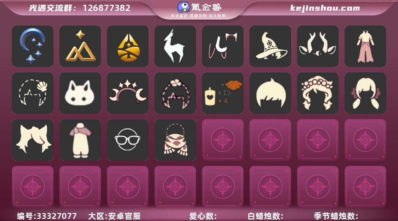 账号类型: 手机账号 季节已毕业: 夜行季,拾光季,归巢季,九色鹿季 完成地图: 无 礼包: 巫师,九色鹿角,牛仔裤,贝壳,兔子,星月头饰,四叶草,创始人,皮皮猫套装礼包 裤子: 背带裤 面饰: 黑框眼镜 项链: 围巾 发型: 正太,樱花,猫耳 头饰: 花环 亮点: 重塑药水78