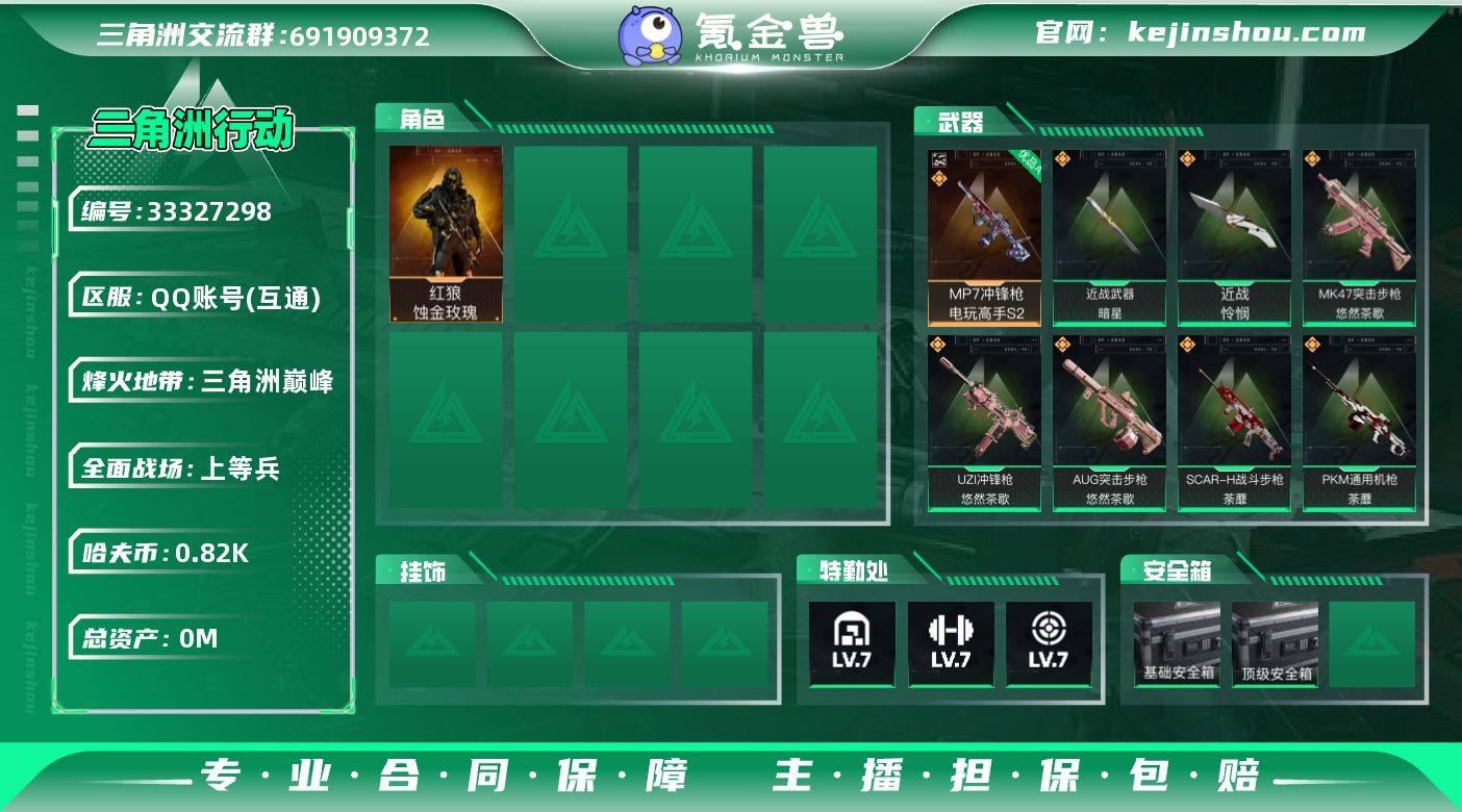 实名: 不可修改 烽火地带段位: 三角洲巅峰 全面战场段位: 上等兵 总资产: 143 哈夫币: 825 干员外观: 红狼-蚀金玫瑰 传说武器皮肤: M4A1突击步枪-蚀金玫瑰,近战-怜悯,M4A1突击步枪-阿米娅,CAR-15突击步枪-阿米娅,复合弓-黑-天际线,AK-12突击步枪-特斯拉线圈,SR-3M紧凑突击步枪-特斯拉线圈,UZI冲锋枪-特斯拉线圈,勇士冲锋枪-能天使-午夜邮差,SCAR-H战斗步枪-启航,KC17突击步枪-电锯惊魂,SG552突击步枪-运动员,SKS射手步枪-骑士,近战-暗星,MK47突击步枪-暗星,SR-3M紧凑突击步枪-暗星,M14射手步枪-蛮荒,腾龙突击步枪-马年祥瑞,G18-马年祥瑞,SCAR-H战斗步枪-荼蘼,PKM通用机枪-荼蘼,SR-3M紧凑突击步枪-荼蘼,.357左轮-缄花,SR-25射手步枪-缄花,M14射手步枪-缄花,MK47突击步枪-悠然茶歇,AUG突击步枪-悠然茶歇,UZI冲锋枪-悠然茶歇 亮点: 【优质装备】:近战-怜悯