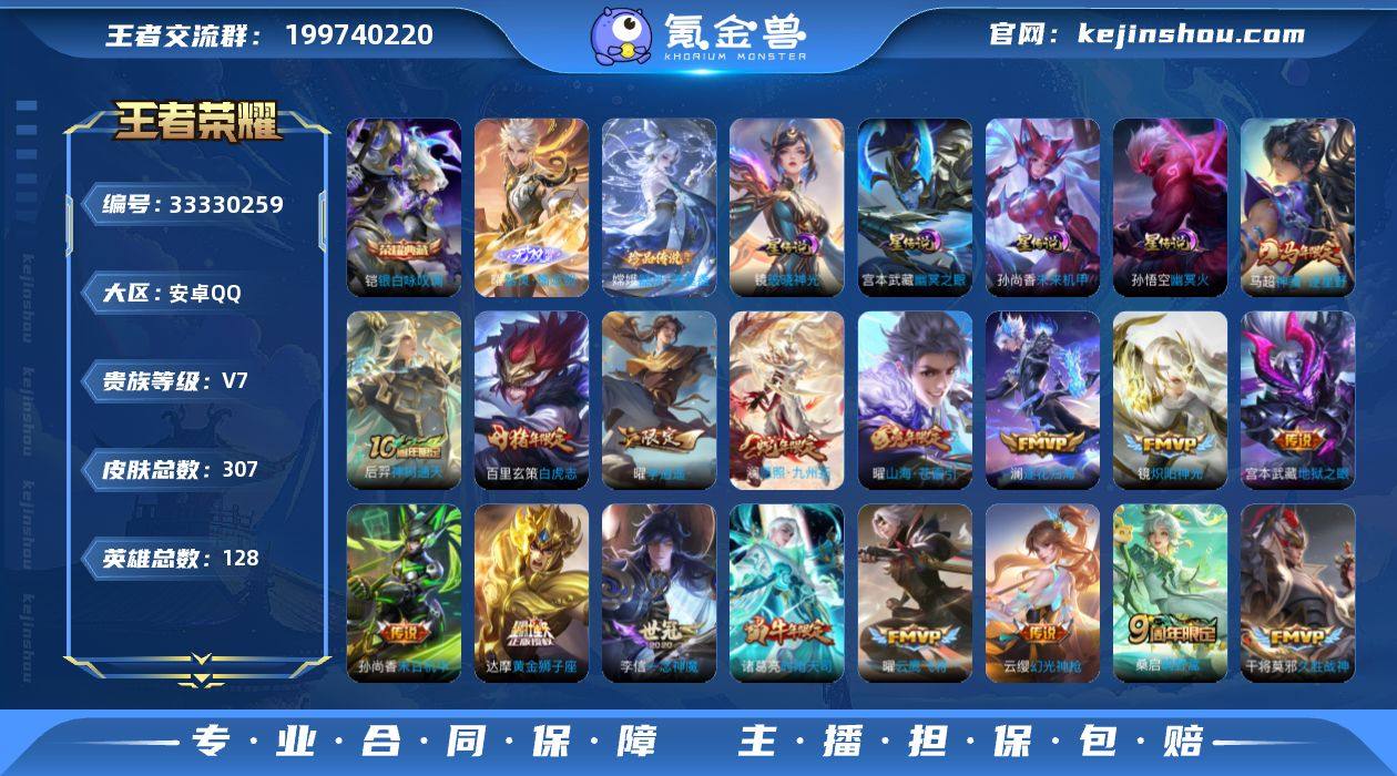 【店铺主推·曜全皮·器灵螭龙剑·银白咏叹调·器灵落星盏·幽冥之眼·破晓神光·神骥逐星野·愿照九州拓·逐花归海·燃星之曲·山海苍雷引·李逍遥·时雨天司·炽阳神光·一念神魔·白虎志·埋骨钱·飞衡·至尊宝·无二次包过】YXw22798-安卓Q-128英雄-307皮肤-4王者印记-210铭文-贵族积分4w【贵族7】【1典藏·1无双·1珍品·4星传说·22传说·15按键】【因赛季更新游戏段付以上号为准!】 【英雄全皮】:孙权全皮,猪八戒全皮,敖隐全皮,曜全皮,空空儿全皮,影全皮 【荣耀典藏】:铠银白咏叹调 【无双皮肤】:曜器灵螭龙剑 【珍品传说】:嫦娥器灵落星盏 【星元皮肤】:宫本武藏幽冥之眼,孙悟空幽冥火,孙尚香未来机甲,镜破晓神光 【传说皮肤】:马超神骥逐星野,后羿神树通天,澜愿照九州拓,云缨幻光神枪,桑启鸣野蒿,澜逐花归海,花木兰燃星之曲,曜山海苍雷引,曜李逍遥 ,诸葛亮时雨天司,铠绛天战甲,镜炽阳神光,孙悟空零号赤焰,曜云鹰飞将,李信一念神魔,干将莫邪久胜战神,达摩黄金狮子座,百里玄策白虎志,后羿黄金射手座,孙尚香末日机甲,宫本武藏地狱之眼,孙悟空地狱火 【限定皮肤】:暃埋骨钱,大乔绒语心约,姜子牙天穹之誓,杨戬破阵退雄兵,狄仁杰阴阳师,赵云皇家上将,墨子...