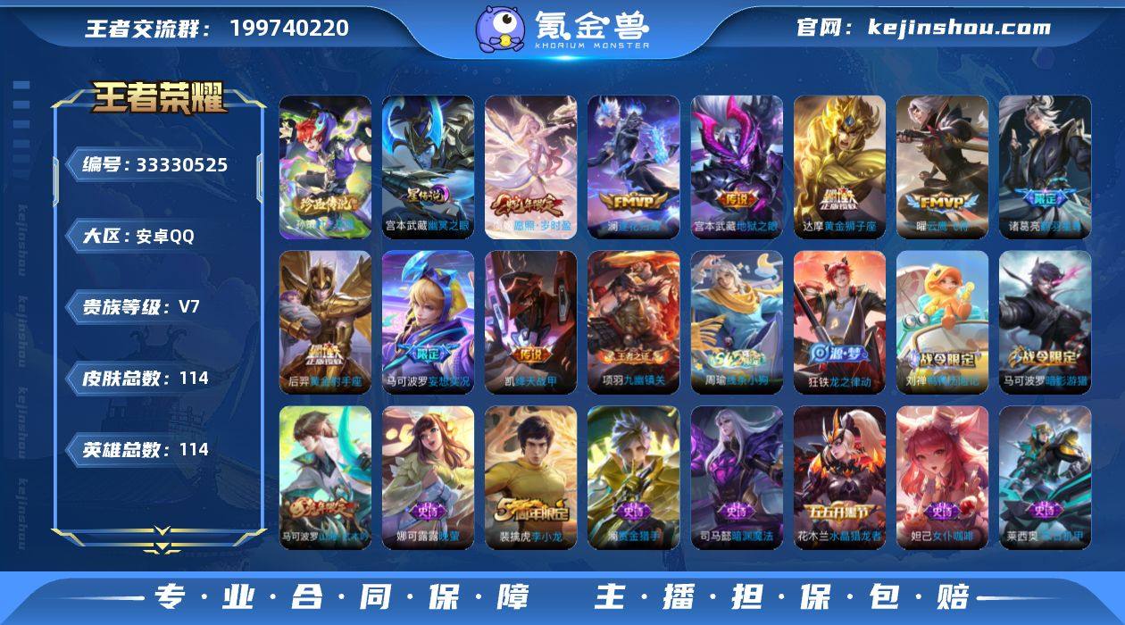 【精品推荐·幽冥之眼·孙策时之奇旅·愿照岁时盈·澜逐花归海·妄想实况·鹤羽星尊·云鹰飞将·山海玄木吟·可二次】YXw23039-安卓Q-114英雄-114皮肤-4王者印记-90铭文-贵族积分2w【贵族7】【1珍品·1星传说·9传说·8按键】【因赛季更新游戏段付以上号为准!】 【珍品传说】:孙策时之奇旅 【星元皮肤】:宫本武藏幽冥之眼 【传说皮肤】:虞姬愿照岁时盈,澜逐花归海,马可波罗妄想实况,诸葛亮鹤羽星尊,铠绛天战甲,曜云鹰飞将,达摩黄金狮子座,后羿黄金射手座,宫本武藏地狱之眼 【限定皮肤】:狄仁杰阴阳师,赵云皇家上将,马可波罗暗影游猎,马可波罗山海玄木吟,马可波罗妄想实况,狄仁杰魔术师,达摩沙漠行僧,项羽海滩派对,李元芳云中旅人,诸葛亮鹤羽星尊,沈梦溪大漠名商,裴擒虎李小龙,裴擒虎擒涛扼浪,蒙犽狂想玩偶喵,鲁班大师探海日志,鬼谷子天穹祈灯,鲁班七号蔬乡物语 【年限皮肤】:马可波罗山海玄木吟,虞姬愿照岁时盈 【赛季限定】:达摩沙漠行僧,沈梦溪大漠名商,李元芳云中旅人,裴擒虎擒涛扼浪,鲁班大师探海日志,鬼谷子天穹祈灯,太乙真人谧流熔炉,钟馗虚灵犬护,甄姬逆浪荇歌,项羽九幽镇关 【战令限定】:马可波罗暗影游猎,蒙犽狂想玩偶喵,鲁班七号蔬...