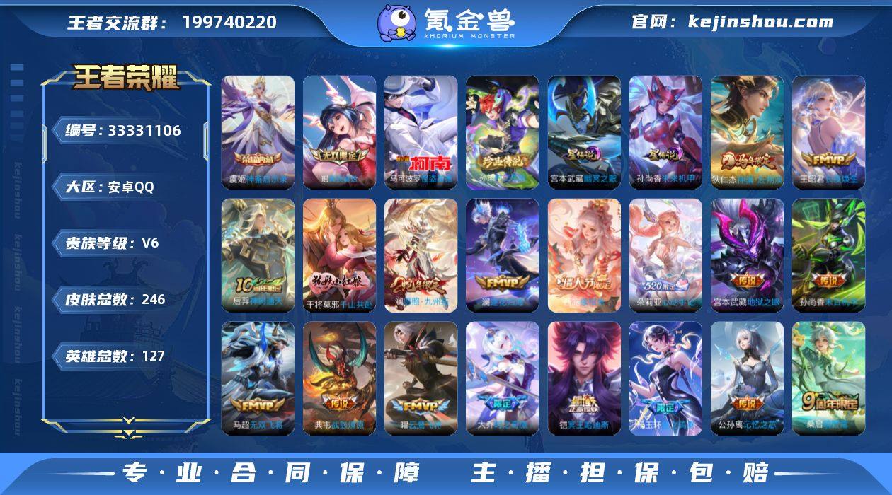 【精品推荐·神鉴启示录·真我赫兹·怪盗基德·时之奇旅·冥王哈迪斯·神骥赴朔漠·续相思·星之鸣奏·时之奇旅·心动手记·愿照九州拓·山海玄木吟·君映山客·无二次包过】YXw23206-安卓Q-127英雄-246皮肤-10王者印记-138铭文-贵族积分4w【贵族6】【1典藏·1无双·2珍品·2星传说·22传说·19按键】【因赛季更新游戏段付以上号为准!】 【英雄全皮】:孙权全皮,敖隐全皮,桑启全皮,空空儿全皮,影全皮,少司缘全皮 【荣耀典藏】:虞姬神鉴启示录 【无双皮肤】:瑶真我赫兹 【珍品传说】:孙策时之奇旅,马可波罗怪盗基德 【星元皮肤】:孙尚香未来机甲,宫本武藏幽冥之眼 【传说皮肤】:狄仁杰神骥赴朔漠,王昭君长夜焕生,后羿神树通天,干将莫邪千山共赴,西施续相思,杨玉环星之鸣奏,澜愿照九州拓,王昭君映山客,桑启鸣野蒿,铠冥王哈迪斯,朵莉亚心动手记,典韦战鼓燎原,澜逐花归海,大乔时之奇旅,东皇太一灼幽烈阳,公孙离记忆之芯,马超无双飞将,铠绛天战甲,曜云鹰飞将,张良黄金白羊座,孙尚香末日机甲,宫本武藏地狱之眼 【限定皮肤】:铠冥王哈迪斯,暃埋骨钱,蒙犽顽岩魄,蔡文姬夏日便利店,大乔绒语心约,虞姬夏日便利店,姜子牙天穹之誓,狄仁杰阴阳师,赵云皇家上将,妲己...