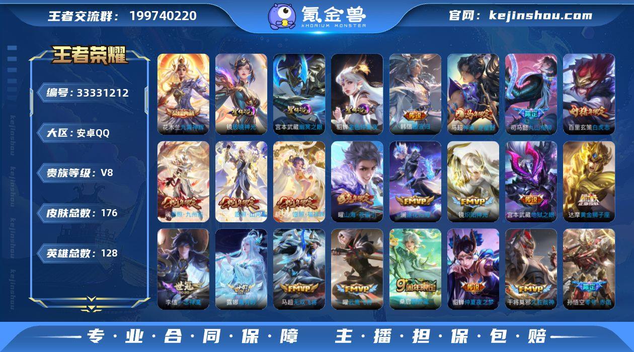 【高性价比·九霄神辉·破晓神光·白虎志·神骥逐星野·愿照山河定·愿照九州拓·愿照福禄聚·山海苍雷引·逐花归海·踏浪归·可二次】YXw23231-安卓Q-128英雄-176皮肤-6王者印记-150铭文-贵族积分5w【贵族8】【1典藏·3星传说·21传说·21按键】【因赛季更新游戏段付以上号为准!】 【英雄全皮】:孙权全皮,敖隐全皮,空空儿全皮 【荣耀典藏】:花木兰九霄神辉 【星元皮肤】:宫本武藏幽冥之眼,貂蝉金色仲夏夜,镜破晓神光 【传说皮肤】:韩信踏浪归,马超神骥逐星野,司马懿九山相柳,司空震愿照山河定,澜愿照九州拓,蔡文姬愿照福禄聚,桑启鸣野蒿,澜逐花归海,露娜霜月吟,曜山海苍雷引,马超无双飞将,镜炽阳神光,虞姬启明星使,孙悟空零号赤焰,曜云鹰飞将,李信一念神魔,干将莫邪久胜战神,达摩黄金狮子座,百里玄策白虎志,貂蝉仲夏夜之梦,宫本武藏地狱之眼 【限定皮肤】:虞姬夏日便利店,姜子牙天穹之誓,李白谪仙醉月,狄仁杰阴阳师,赵云皇家上将,元歌无心,狄仁杰魔术师,项羽海滩派对,孙悟空至尊宝,孙悟空零号赤焰,虞姬启明星使,百里玄策白虎志,百里玄策原初追逐者,曜山海苍雷引,姬小满妄想食味,沈梦溪龙舞盛年 【年限皮肤】:百里玄策白虎志,曜山海苍雷引,...