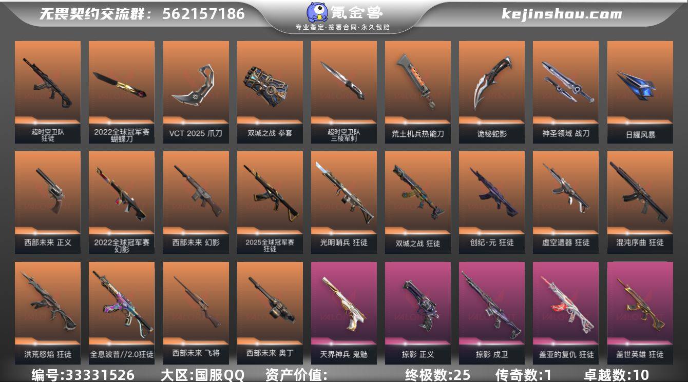 【PTWW3851】LV等级93/皮肤总价值62700/段位铂金/总皮肤数量94/刀皮数量12/枪皮数量82/套装数量5/具体详情请看图/2022全球冠军赛/VCT 2025赛季礼包/西部未来/《双城之战》收藏套装/掠影套装/幻棱/炼狱/维斯/暮蝶/钛狐/壹决/捷风/不死鸟/贤者/猎枭/蝰蛇/零/芮娜/尚勃勒/斯凯/夜露/盖可/蝴蝶刀-2022全球冠军赛/超时空卫队 三棱军刺/VCT 2025 爪刀/紫金爪刀/鬼丸国纲/拳套-双城之战/未来开拓者/荒土机兵热能刀/影刃/诡秘蛇影/神圣领域 战刀/日耀风暴/2025全球冠军赛 狂徒/狂徒-光明哨兵/狂徒-洪荒怒焰/狂徒-混沌序曲/狂徒-全息波普//2.0/狂徒-双城之战/狂徒-创·纪元/狂徒-虚空遗器/狂徒-超时空卫队/狂徒-堕天遗武/狂徒-掠影/狂徒-盖世英雄/狂徒-盖亚的复仇/狂徒-海洋之星/狂徒-离子武器2.0/狂徒-荒土机兵/狂徒-诡秘蛇影/幻影-2022全球冠军赛/幻影-西部未来/幻影-超限闪存/幻影-神圣领域/幻影-纳米打击/幻影-末日之翼/戍卫-掠影/戍卫-浮光跃金/戍卫-逆冲蛮牛/戍卫-月球哨兵/戍卫-折光棱晶/獠犬-神圣领域/獠犬-模拟赫兹/獠犬-逆冲蛮牛/冥驹-掠影/冥驹-荒土机兵/冥驹-模拟赫兹/冥驹-星云暗涌/飞将-西部未来/飞将-末日之翼/莽侠-超限闪存/莽侠-诡秘蛇影/莽侠-月球哨兵/战神-神圣领域/...