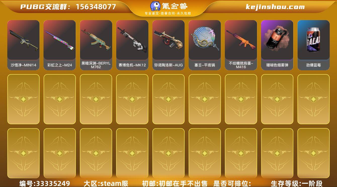 CC16209/可排位/3段/375级/1张图纸/烟雾弹/烟枪/911/8级猛虎98k/2级无信号M4/2级冰域GZ/1级权志龙AUG/1级时空M4/1级烈日s1897/1级暗影mk12/1级夜曲M24/1级塞壬平底锅/绿东/2星魂套装/白战神/滑雪镜/金面/黑鬼/白熊/青海摇