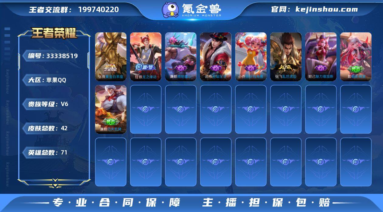 w小国廉颇·金标1.2w朵莉亚·1.2w元盾·万战云缨·问心剑·沧流箭·满马年限定·无二次包过】w24248-苹果Q-71英雄-42皮肤-1王者印记-26铭文-贵族积分1w【贵族6】【1无双·1珍品·7传说·5按键】【因赛季更新游戏段付以上号为准!】