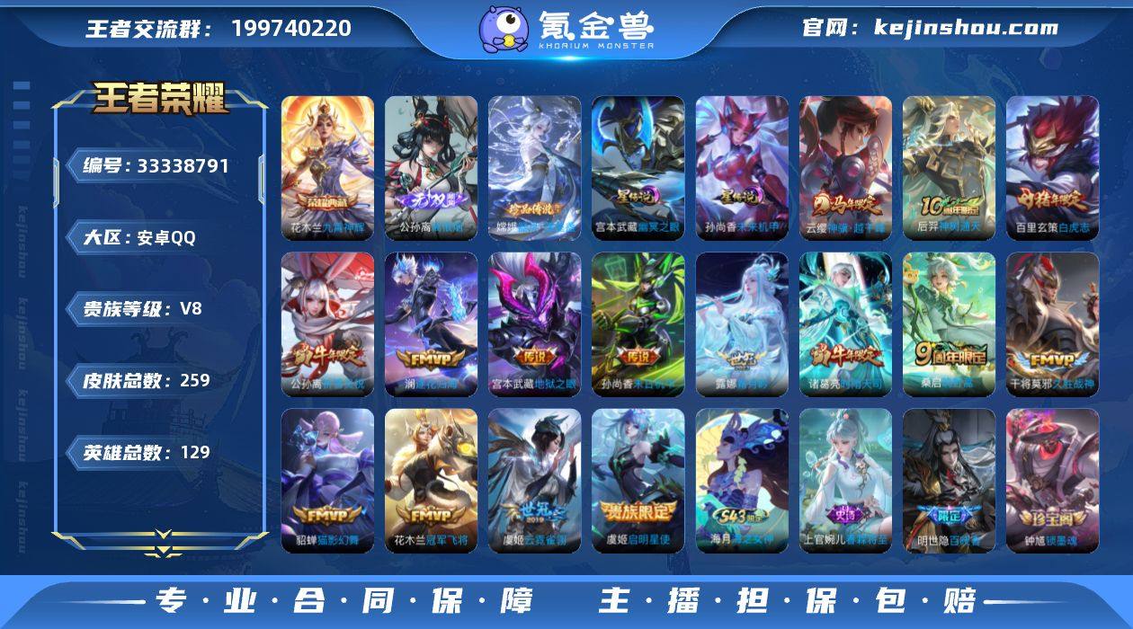 AHC50537,,,,,,,万战花木兰--元法--2星传说--9按键--柔柔宝--,,,,,安卓Q-V8-最强王者段位-129英雄-259皮肤-1典藏皮肤-1无双-1珍品传说-15传说-72史诗 【英雄全皮】:孙权全皮,敖隐全皮,影全皮 【荣耀典藏】:花木兰九霄神辉 【无双皮肤】:公孙离离恨烟 【珍品传说】:嫦娥器灵落星盏 【传说皮肤】:云缨神骥越千峰,后羿神树通天,桑启鸣野蒿,澜逐花归海,露娜霜月吟,公孙离祈雪灵祝,诸葛亮时雨天司,虞姬启明星使,貂蝉猫影幻舞,干将莫邪久胜战神,虞姬云霓雀翎,百里玄策白虎志,花木兰冠军飞将,孙尚香末日机甲,宫本武藏地狱之眼 【限定皮肤】:白起狰,公孙离离恨烟,蒙犽顽岩魄,姜子牙天穹之誓,狄仁杰阴阳师,赵云皇家上将,赵云龙胆,嬴政白昼王子,阿轲迷踪丽影,芈月重明,吕布猎兽之王,周瑜赤莲之焰,夏侯惇朔风刀,甄姬游园惊梦,曹操烛龙,典韦穷奇,狄仁杰魔术师,狄仁杰万华元夜,达摩沙漠行僧,项羽海滩派对,老夫子醍醐杖,刘邦夺宝奇兵,兰陵王金庭之子,孙悟空至尊宝,孙悟空大圣娶亲,牛魔御旌,后羿圣弓游侠,李元芳银河之约,李元芳云中旅人,虞姬启明星使,干将莫邪真爱魔法,雅典娜黎明之约,太乙真人饕餮,鬼谷子原初探秘者,...