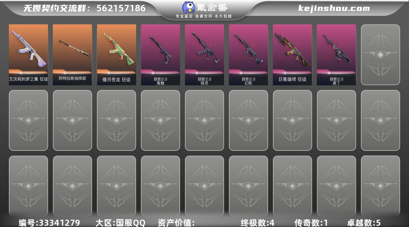 【套装】:掠影//2.0套装 【英雄】:幻棱,炼狱,暮蝶,壹决,铁臂,捷风,雷兹,幽影,不死鸟,贤者,猎枭,蝰蛇,零,芮娜,奇乐,尚勃勒,霓虹,斯凯,夜露,K/O,盖可,黑梦 【近战武器】:近战武器-影钩,近战武器-阿特拉斯指挥部 甩棍 【狂徒】:狂徒-偃月苍龙,狂徒-艾沃莉的梦之翼,狂徒-日冕雄师 【幻影】:幻影-掠影//2.0 【奥丁】:奥丁-掠影//2.0 【骇灵】:骇灵-掠影//2.0 【鬼魅】:鬼魅-掠影//2.0 【卡面】:无畏契约GO!第一卷:芮娜 卡面,无畏契约GO!第一卷:零 卡面,《双城之战》金克丝 卡面,代号红色 卡面,新兵报到 卡面,V契约 卡面,无畏契约 卡面 【喷漆】:霓光四射 喷漆,买装还是存钱 喷漆,关门放狗 喷漆,无畏契约GO!第一卷:零 喷漆,胜利属于无畏契约 喷漆,GLHF 喷漆,无畏契约 喷漆 【挂饰】:无畏契约GO!第一卷 零 挂饰,瞬云履 挂饰,迷你K/O 挂饰,天外飞客 挂饰,无畏契约 纪念币 挂饰