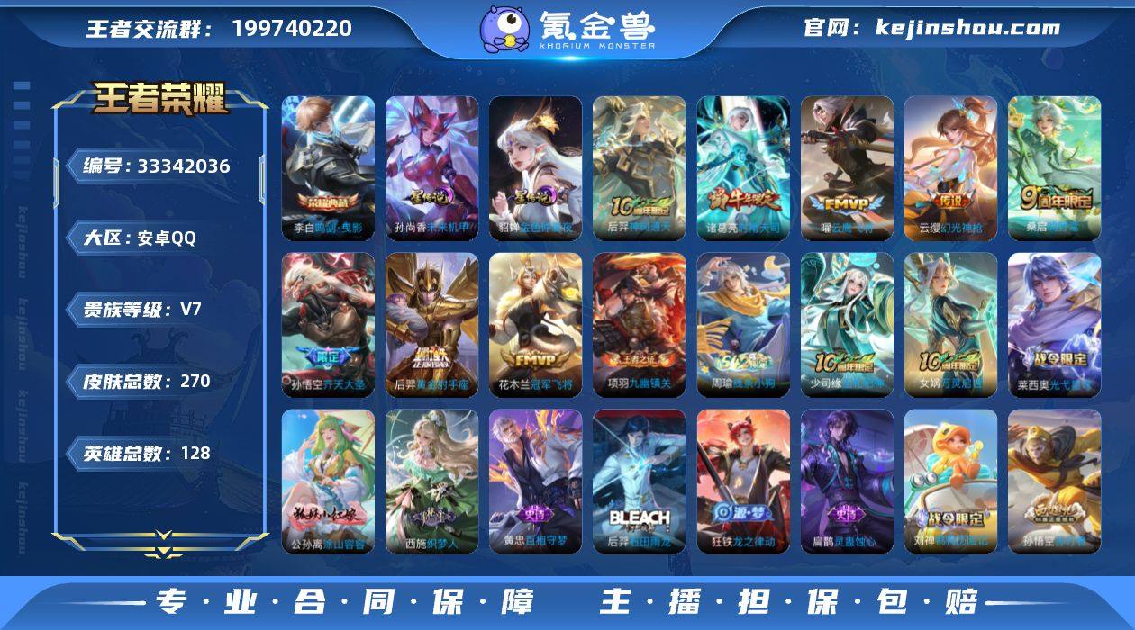 【WZ182319】安卓Q-V7-至尊星耀II段位-128英雄-270皮肤-1典藏皮肤-8传说-69史诗【英雄全皮】:影全皮【荣耀典藏】:李白鸣剑曳影【传说皮肤】:后羿神树通天,云缨幻光神枪,桑启鸣野蒿,孙悟空齐天大圣,诸葛亮时雨天司,曜云鹰飞将,花木兰冠军飞将,后羿黄金射手座【限定皮肤】:蔡文姬夏日便利店,大乔绒语心约,虞姬夏日便利店,姜子牙天穹之誓,杨戬破阵退雄兵,狄仁杰阴阳师,赵云皇家上将,墨子神迹守卫,孙尚香蔷薇恋人,庄周高山流水,芈月幻夜卜梦,元歌无心,狄仁杰魔术师,达摩星际陆战队,达摩沙漠行僧,项羽海滩派对,老夫子航海奇遇记,程咬金演武夺筹,兰陵王金庭之子,孙悟空孙行者,孙悟空齐天大圣,李元芳云中旅人,钟馗驱傩正仪,鬼谷子五谷丰年,诸葛亮时雨天司,黄忠火炮绅士,苏烈千军破阵,沈梦溪大漠名商,裴擒虎擒涛扼浪,云中君纤云弄巧,猪八戒猪悟能,嫦娥拒霜思,嫦娥暖冬兔眠,西施玲珑珍味,鲁班大师探海日志,桑启海盐诗旅,暃星界游侠,戈娅驭风魔法,艾琳女武神,艾琳流音漫舞,司空震地狱燃心,阿古朵江河有灵,张良古海寻踪,蒙犽百解令,高渐离燃音魔法,妲己灵卜魔法,鬼谷子天穹祈灯,姬小满妄想食味,沈梦溪龙舞盛年,鲁班七号蔬乡...