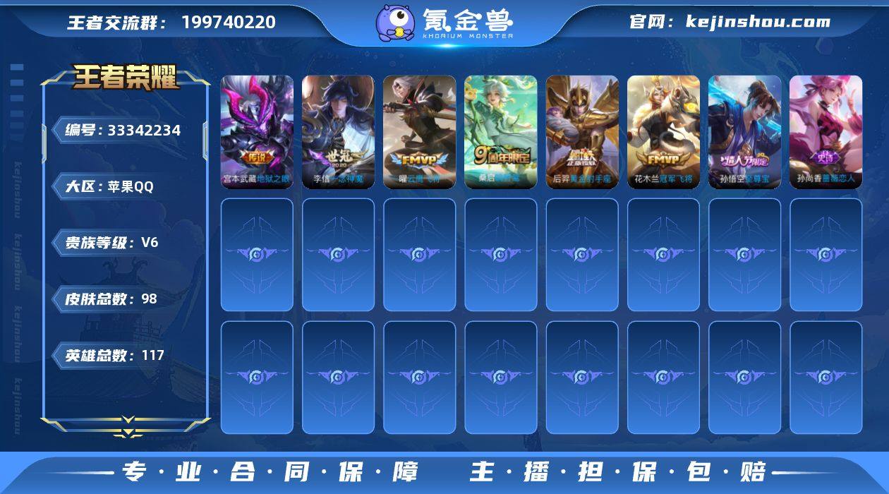 苹果Q 可二次 7传说117英雄98皮肤 战鼓燎原 鸣野蒿 云鹰飞将 冠军飞将 一念神魔 黄金射手座 地狱之眼 万灵启世 至尊宝 逐霄之志 黄忠百相守梦 无限星赏官 暗隐猎兽者 猫狗日记女 金属风暴 地狱岩魂 曙光守护者 蔷薇恋人 黄金分割率 圣诞恋歌 幽灵船长 圣诞狂欢 末日机甲男 星夜王子 节奏热浪 时之恋人女 街头霸王 鬼剑武藏 花好人间 克喵 未来纪元赵云 敏锐之力 海盐诗旅 皇家上将 水果甜心 蔬乡物语鲁班 天穹祈灯 鹰眼统帅 魔术师 王者荣耀账号