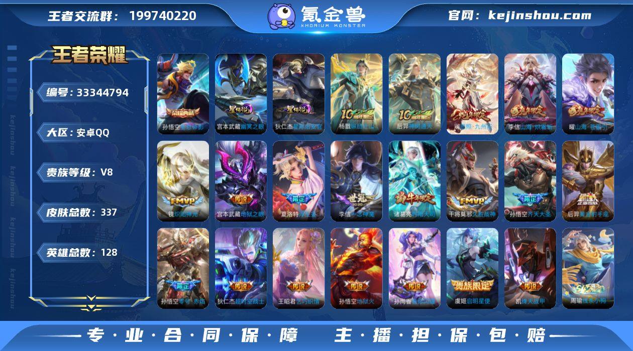 【W5333】财神纳福天幕-安卓Q区-无二次-贵8-128英雄-337皮肤-1典藏-20传说-2星元-16按键-260夺宝值-澜/孙悟空专属播报-满铭文-全息碎影/纵目迁山/愿照·九州拓/炽阳神光/一念神魔/地狱之眼/黄金射手座/时雨天司/浮生妄/山海·苍雷引/山海·炽霜斩/绛天战甲/冰锋战神/器灵·浮梦炉/山海·玄木吟/飞衡/蓝屏警告/青春决赛季-贵族积分8.3W-营地ID:320442524 【星元皮肤】:宫本武藏幽冥之眼,狄仁杰星际治安官