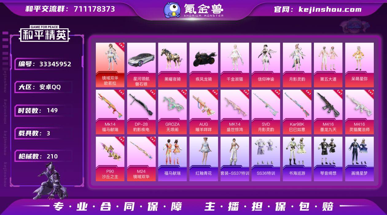 【公主女号3级红装11特效枪7粉装3载具 秒换绑不用等】 安卓Q区-72708热力值-15印记-149套装-210枪皮 【1红装】 镜域双华-欧若拉(3级)【3载具】 疾风龙骑 黑曜夜骑 星河领航(磐石银)【7粉装】 缤纷油彩(猪脸妹) 第五大道 呆萌星弥 角色-月影灵韵 角色-信仰神谕 角色-千金淑猫【11特效枪】 M416-墨龙九天(3级) M416-灵猫魔法师(3级) M24-镜域双华(2级) Mk14-盛世惊鸿(6级) P90-沙丘之主(2级) Mk14-福马献瑞(1级) GROZA-无垠阁(5级) SVD-月影灵韵(4级) Kar98K-巳巳如意(5级) AUG-暖羊咩咩(5级) DP-28-豹影疾电(5级)【234热门】 潮萌小黄鸭 破蛋小黄鸡 极速红龙 白色伏地魔 SS27特训 SS26特训 SS25特训 SS24特训 SS23特训 SS22特训 Mk47-洛神天依 AWM-不夜海上花 SCAR-L-玉兔迎春 M762-天降萌叽 M762-彩虹符号 Mk47-乌木金纹 UMP45-蓝色火焰 DBS-彩虹符号 M249-彩虹符号 MG3-幻世战舞者 AKM-霓虹街区 M416-蓝色火焰 长空猛禽 特训学院 青涩时光 青年教官 霓虹街区 妙红点点 蜜语绒猫 懵萌河马 魅力单车 猎鹰 黎明保卫者 蓝色运动 橘黑制服 竞技达人朋克 活力之心 黄色运动 黄色伏地魔 红色运动 黑色伏地魔 汤姆逊-智耀战神 S1897-糯团青竹 MK20-H-樱桃泡泡 AA12-G-雨过天青 M24-...