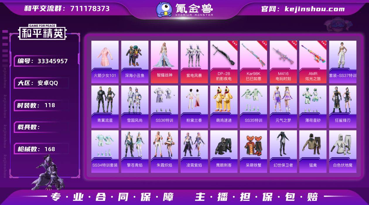 【老火箭少女101 星河浪客4特效枪2粉装 秒换绑不用等】 安卓Q区-47201热力值-8印记-118套装-168枪皮 【4稀有】 火箭少女101 AWM-黄金龙骨 星河浪客 Mark.06蓝螳螂【2粉装】 紫电风暴 角色-智耀战神【4特效枪】 AMR-炫光之旅(7级) Kar98K-巳巳如意(5级) M416-电玩时刻(5级) DP-28-豹影疾电(5级)【179热门】 鹰眼刺客 破蛋小黄鸡 深海小丑鱼 暗影哥特(红眼罩) 白色伏地魔 SS27特训 SS26特训 SS25特训 SS24特训 SCAR-L-玉兔迎春 M762-彩虹符号 UMP45-炫光之旅 M249-彩虹符号 AKM-霓虹街区 呆萌铁蟹 M416-蓝色火焰 长空猛禽 特训学院 圣堂之誓 青涩时光 霓虹街区 魅力单车 蓝色运动 竞技达人朋克 黄色运动 漫步者 黄色伏地魔 红色运动 黑色伏地魔 海岛探路者 纯真浪花 S1897-糯团青竹 Mini14-绯穹魔姬 蝎式手枪-行星泡泡 P90-紫矿核心 GROZA-紫矿核心 米开朗基罗 AC-VAL-玩趣呆呆 顶瓜瓜 冰河战士 雏菊兔兔 MG-36-薄荷星砂 恋语绒绒 SS34特训 朱霞炽焰 蜜獾-鸡智如我 AWM-天降萌叽 突击盾牌-初号机 觉醒Ver. 大橘大利 凌霄紫焰 龙魂突击队 SS29特训 萝兰蝴蝶 破片手榴弹-爆破雪人 SS30特训 ACE32-冰晶雪宝 鱼渊荷华 擎苍青焰 青翼流星 SS28特训 海盐绵绵冰 M16A4-冰河战士 燕燕于...