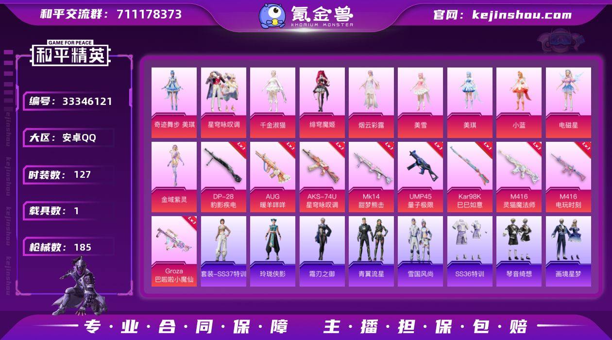 【女号M4灵猫魔法师10粉装9特效枪1载具 秒换绑不用等】 安卓Q区-57527热力值-6印记-127套装-185枪皮 【1载具】 路特斯EV黄色【10粉装】 角色-电磁星 角色-金域紫灵 角色-小蓝 角色-美雪 角色-美琪 角色-烟云彩露 角色-绯穹魔姬 星穹咏叹调 角色-奇迹舞步 美琪 角色-千金淑猫【9特效枪】 M416-灵猫魔法师(3级) GROZA-巴啦啦小魔仙(7级) Kar98K-巳巳如意(5级) AKS-74U-星穹咏叹调(7级) Mk14-甜梦熊击(5级) AUG-暖羊咩咩(5级) M416-电玩时刻(5级) DP-28-豹影疾电(5级) UMP45-量子极限(5级)【233热门】 浪漫天命 破蛋小黄鸡 SS27特训 Mini14-梦幻火箭 SCAR-L-玉兔迎春 M249-彩虹符号 MG3-幻世战舞者 长空猛禽 青涩时光 魅力单车 黄色运动 海岛探路者 纯真浪花 春日漫步 SKS-青瓷战姬 S1897-糯团青竹 Mini14-绯穹魔姬 情公主 蓝调潮影 平底锅-画境星梦 海琴烟 P90-紫矿核心 暗夜风云 GROZA-紫矿核心 玲珑侠影 AC-VAL-玩趣呆呆 顶瓜瓜 冰河战士 雏菊兔兔 MG-36-薄荷星砂 恋语绒绒 SS34特训 M417-时空协奏 漫游都市 朱霞炽焰 TMP-9-江南烟雨 蜜獾-鸡智如我 撬棍-冰晶雪宝 AWM-天降萌叽 创世·追猎 怀庆长公主 大橘大利 霜刃之御 彩虹兔 PKM-时空协奏 凌霄紫焰 小鸟芋圆 蓝冰羽 临安公...