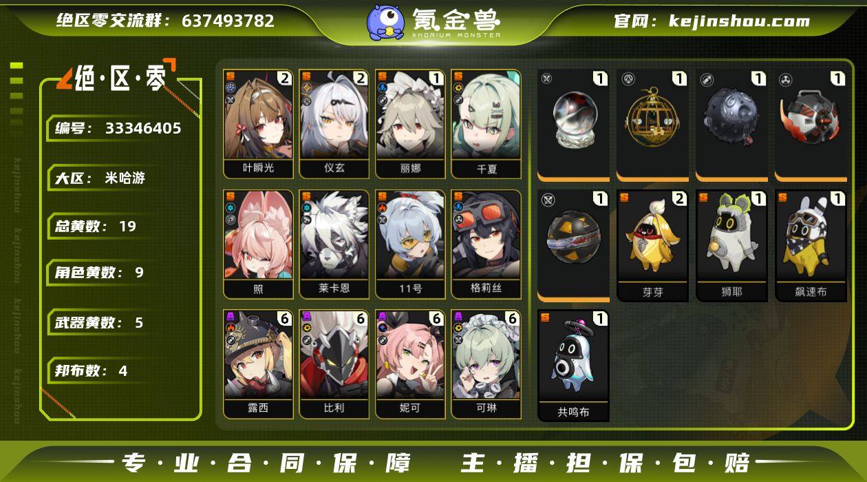 这个号和崩铁绑定,有霞蝶全金队伍和白呃全金队伍。此号有880元点券,以及仪炫皮肤和千夏皮肤