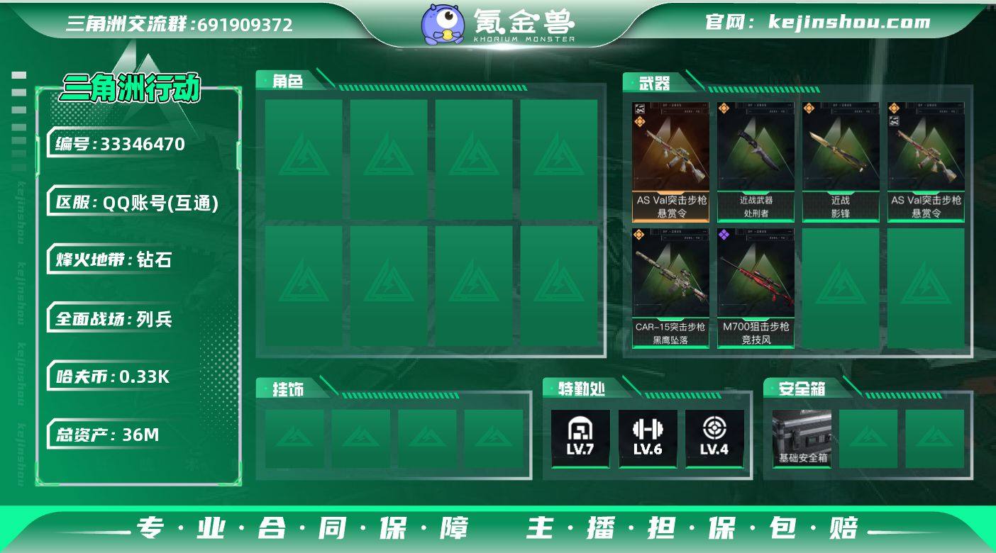 XXSJZ2002【极品三刀皮影锋 处刑者 暗星】三端互通-总价值36.12M-哈夫币334.61-烽火地带等级60-烽火地带段位钻石【近战武器】黑鹰 影锋 处刑者 暗星【枪皮】SG552突击步枪-彩墨涂鸦 M7战斗步枪-天际线 AS Val突击步枪-悬赏令 M4A1突击步枪-粉色涂装 M4A1突击步枪-高雅黑 M4A1突击步枪-海色 AKM突击步枪-肃杀 QBZ95-1突击步枪-高雅黑 QBZ95-1突击步枪-海浪 QBZ95-1突击步枪-海色 QBZ95-1突击步枪-2026 AKS-74U突击步枪-冰天雪地 K416突击步枪-一帆风顺 K416突击步枪-阿萨拉特攻 K416突击步枪-冬日风情 M16A4突击步枪-高雅黑 AUG突击步枪-浅蓝涂装 M7战斗步枪-黑巧甜心 SG552突击步枪-浅蓝涂装 SG552突击步枪-海浪 SG552突击步枪-狂欢 SG552突击步枪-2026 SG552突击步枪-贴花艺术 G3战斗步枪-高雅黑 G3战斗步枪-哈夫克警备 PTR-32突击步枪-黄蜂 腾龙突击步枪-万金泪冠 47突击步枪-暗星 SR-3M紧凑突击步枪-巨兽 MP5冲锋枪-海色 MP5冲锋枪-黄蜂 P90冲锋枪-黑巧甜心 Vector冲锋枪-异域战争 UZI冲锋枪-海色 野牛冲锋枪-高雅黑 SMG-45冲锋枪-行动开启 SR-3M紧凑突击步枪-暗星 勇士冲锋枪-磐石 勇士冲锋枪-冰天雪地 勇士冲锋枪-万金泪冠 MP7冲锋枪-六套之力 4冲锋枪-夜莺 M1014霰弹枪-...
