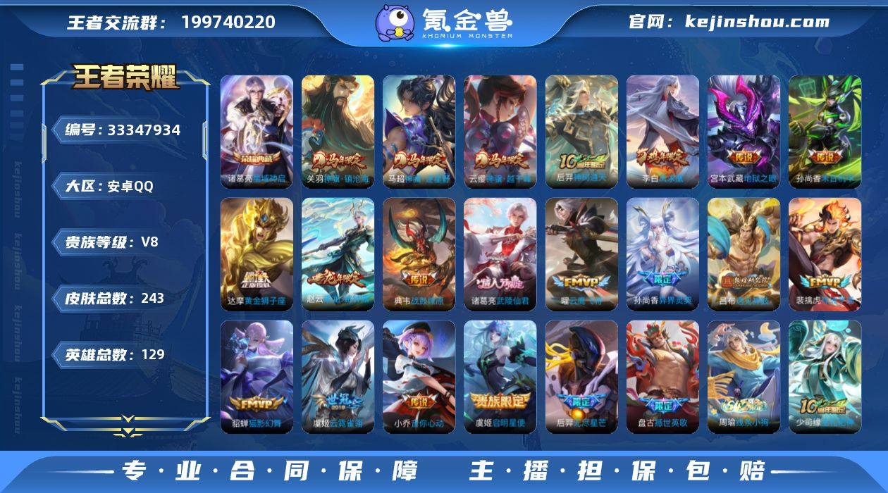 可换绑【高性价比多限定号·诸葛亮典藏·马年关羽马超云樱·龙年赵云·遇见神鼓·无尽星芒·异界灵契·武陵仙君·凤求凰·孙行者·飞衡·青龙志·逐梦之影】 1天幕,16按键,8王者印记,五级铭文150 可二次安卓Q-V8-243皮肤-1典藏皮肤-20传说-61史诗【英雄全皮】:狂铁全皮【荣耀典藏】:诸葛亮星域神启【天幕】:墨染江湖天幕【传说皮肤】:云缨神骥越千峰,关羽神骥镇沧海,马超神骥逐星野,后羿神树通天,裴擒虎祥瑞亨通,典韦战鼓燎原,赵云乘龙铭钟鼎,吕布遇见神鼓,后羿无尽星芒,孙尚香异界灵契,小乔音你心动,虞姬启明星使,曜云鹰飞将,貂蝉猫影幻舞,虞姬云霓雀翎,达摩黄金狮子座,诸葛亮武陵仙君,李白凤求凰,孙尚香末日机甲,宫本武藏地狱之眼【限定皮肤】:白起狰,狄仁杰阴阳师,虞姬凯尔特女王,赵云皇家上将,嬴政优雅恋人,嬴政白昼王子,孙尚香异界灵契,鲁班七号狮舞东方,高渐离死亡摇滚,钟无艳超时空战士,扁鹊炼金王,扁鹊奇幻香踪,芈月重明,吕布猎兽之王,吕布遇见神鼓,元歌云间偶戏,元歌无心,甄姬落雪兰心,曹操烛龙,典韦穷奇,狄仁杰魔术师,狄仁杰万华元夜,达摩沙漠行僧,项羽海滩派对,老夫子醍醐杖,程咬金演武夺筹,韩信逐梦之影,韩信飞衡,王...