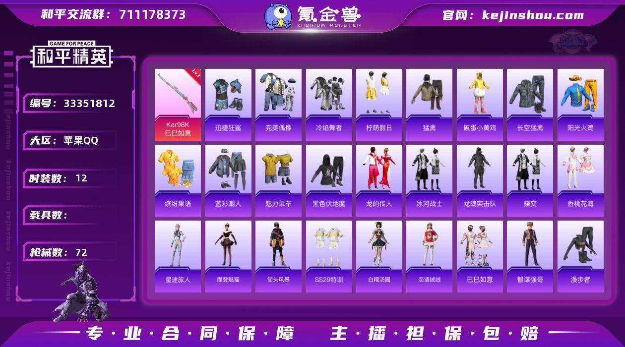 HX9520【地铁48点满天赋-3特效枪-角色-紫俏灵猫,角色-皓月伶影-角色-摩登魅猫-女号地铁号】 苹果 手Q-0粉装-3特效枪-0载具-1粉色飞行器-18837热力值-1王牌印记-50套装-72枪皮 【粉色枪皮等级】:Kar98K-巳巳如意(五级),Mk14-福马献瑞(五级),DP-28-豹影疾电(五级)苹果Q区-3特效枪-18837热力值-1王牌印记-50套装-72枪皮【特效枪等级】:Kar98K-巳巳如意(五级- Kar98K-巳巳如意)【优质武器皮肤】: Kar98K-巳巳如意【稀有武器皮肤】: Kar98K-巳巳如意 Mk14-冰河战士 UZI-冰河战士 M16A4-冰河战士 20-H-乌木金纹 蜜獾-乌木金纹 M416-蓝色火焰 SCAR-L-炫彩节奏 GROZA-影袭 AUG-耀粉歌者 M762-彩虹符号 M24-影袭 M24-奇异狩猎者 SKS-迅猛狂鲨 UZI-影袭 UZI-天降萌叽 Vector-生命誓言 S686-彩虹符号 S686-生命誓言 S12K-夜灯 DBS-彩虹符号 M249-彩虹符号 MG3-幻世战舞者 平底锅-光之冒险 Kar98K-顶峰精英 S686-千金淑猫 AUG-异域银装 20-H-星途旅人 UZI-月影灵韵 M200-乌木金纹 SCAR-L-星途旅人 S686-巳巳如意 SPAS-12-乌木金纹 AKS-74U-鬼刀 破片手榴弹-星途旅人 VSS-香桃花海 Mini14-香桃花海 P90-巳巳如意 破片手榴弹-巳巳如意【其他套装】: 恋语绒绒 迅捷狂鲨 龙魂突击队 摩...
