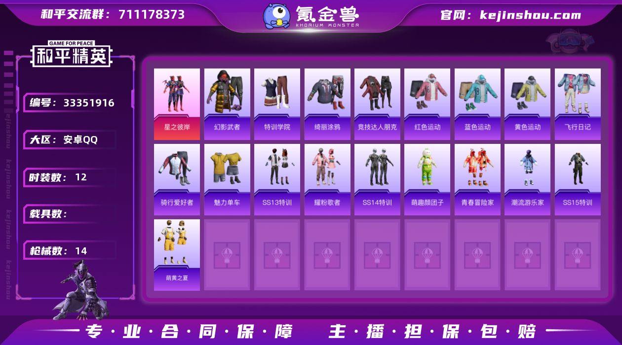 HX9521【粉装-星之彼岸】安卓 手Q-1粉装-0特效枪-0载具-0粉色飞行器-4822热力值-1王牌印记-19套装-14枪皮 【粉色套装】:粉装-星之彼岸安卓Q区-1粉装-4822热力值-19套装-14枪皮【优质套装】: 星之彼岸【稀有武器皮肤】: M416-红色方程式 M416-绯红前夜 AUG-青春冒险家 Mk47-青春冒险家 Kar98K-彩虹符号 AWM-乌木金纹 QBU-青春冒险家 Vector-彩虹符号 野牛-青春冒险家 S1897-乌木金纹 M249-乌木金纹 M249-星之彼岸 平底锅-青春冒险家【其他套装】: 星之彼岸 萌黄之夏 特训学院 红色运动 黄色运动 蓝色运动 骑行爱好者 魅力单车 幻影武者 青春冒险家 潮流游乐家 绮丽涂鸦 竞技达人朋克 萌趣颜团子 耀粉歌者 SS13特训 飞行日记 SS14特训 SS15特训【优质降落伞】: 紫菱降落伞 青羽降落伞 普通降落伞 化学天才降落伞 青春冒险家降落伞 蓝海之火降落伞
