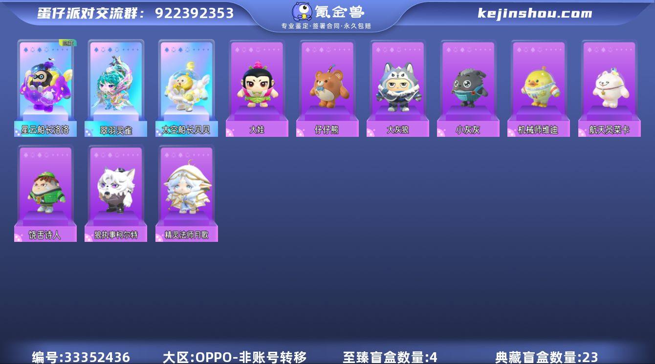 【dan872】OPPO账号 五阶尊赏+古早 猎罪修罗 清凉瓜宝 棉花糖女仆 木偶波露+闪电头像框+多古早表情+惊魂夜蛇精 至臻皮肤数量:4 典藏皮肤数量:23 换绑冷却:无冷却 热门装扮:机械师维迪 大灰狼 精灵法师月歌 狼执事柯尔特 小灰灰 饶舌诗人 翠羽灵雀 太空船长贝贝 星云船长洛洛 仔仔熊 航天员莱卡 大娃 清凉瓜包 棉花糖女仆 载具装扮:星河弹弹车 游游白柳仙·娇 翅膀:翠羽之屏 闪电奖杯 木偶 猎罪之翼