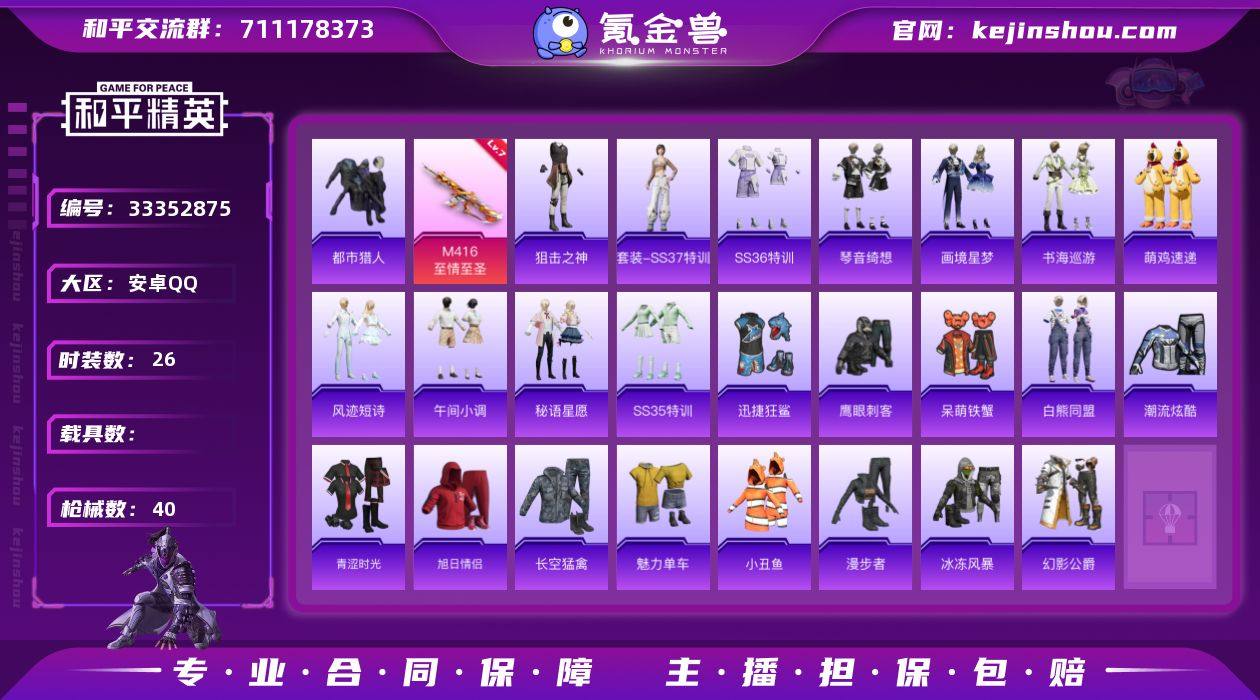"H7089蓝口罩至情至圣身法号 无二次 安卓Q-段位黄金 26级 26套装40枪皮 【1特效枪】 M416-至情至圣 7级 【热门】 都市猎人 小丑鱼 迅捷狂鲨 旭日情侣 炫彩糖果 "