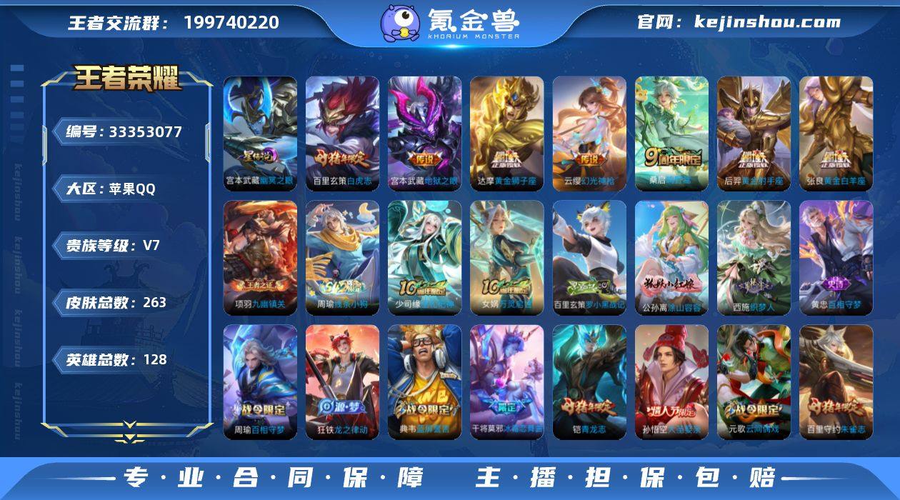 AHC90065,,,,,,,,苹果Q-V7-最强王者段位-128英雄-263皮肤-7传说-71史诗 【英雄全皮】:孙权全皮,影全皮 【传说皮肤】:云缨幻光神枪,桑启鸣野蒿,张良黄金白羊座,达摩黄金狮子座,百里玄策白虎志,后羿黄金射手座,宫本武藏地狱之眼 【限定皮肤】:姜子牙天穹之誓,狄仁杰阴阳师,赵云皇家上将,嬴政白昼王子,孙尚香蔷薇恋人,吕布猎兽之王,元歌云间偶戏,元歌无心,夏侯惇朔风刀,甄姬游园惊梦,曹操烛龙,典韦穷奇,典韦蓝屏警告,狄仁杰魔术师,狄仁杰万华元夜,达摩沙漠行僧,项羽海滩派对,老夫子醍醐杖,程咬金演武夺筹,兰陵王金庭之子,孙悟空大圣娶亲,牛魔御旌,李元芳云中旅人,杨玉环遇见飞天,女娲朔望之晖,干将莫邪冰霜恋舞曲,雅典娜黎明之约,太乙真人饕餮,鬼谷子原初探秘者,鬼谷子五谷丰年,铠青龙志,百里玄策白虎志,百里玄策原初追逐者,百里守约朱雀志,弈星混沌棋,梦奇顽趣,沈梦溪大漠名商,明世隐疑决卦,裴擒虎李小龙,裴擒虎擒涛扼浪,狂铁御狮,米莱狄御霄,盾山御銮,上官婉儿梁祝,嫦娥暖冬兔眠,鲁班大师探海日志,桑启海盐诗旅,暃星界游侠,艾琳女武神,阿古朵江河有灵,张良古海寻踪,蒙恬荣光圣徽,鬼谷子天穹祈灯,沈梦...