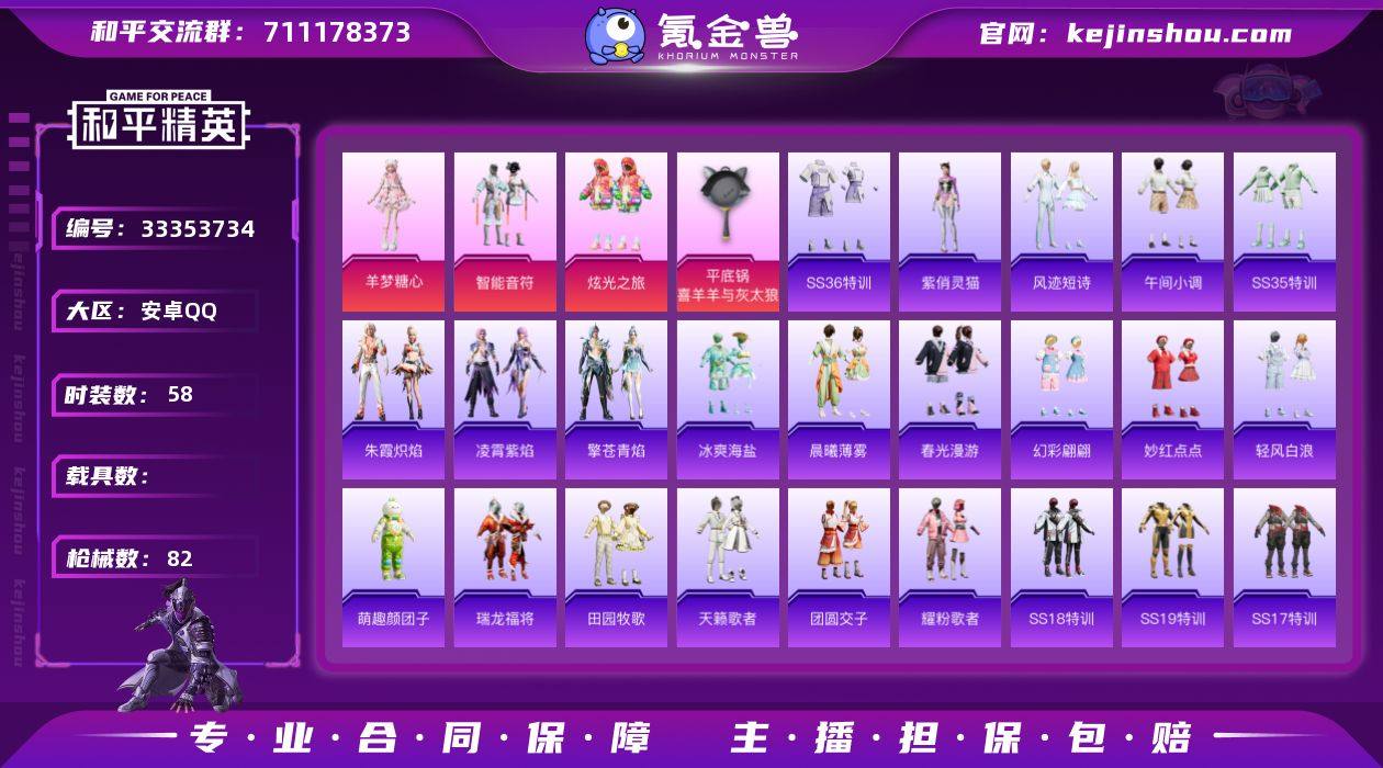【和平精英】3粉装,6特效枪,0载具,历史最高段位:超级王牌9星 王牌印记5次 热力值:47877,107套装,161枪械,169装备,72战备;套装:套装-智能音符,套装-炫光之旅,角色-羊梦糖心,套装-特训学院,套装-猎鹰,套装-青年教官,套装-红色运动,套装-黄色运动,套装-蓝色运动,套装-白色伏地魔,套装-竞技名士,套装-深蓝色名流,套装-酒红色名流,套装-湖蓝色名流,套装-黄色名流,套装-猛禽,套装-长空猛禽,套装-漫步者,套装-海岛探路者,套装-甜蜜告白,套装-春日漫步,套装-鹰眼刺客,套装-冰冻风暴,套装-冷酷挑战者,套装-魅力单车,套装-耀眼新星,套装-野性战心,套装-暗影哥特,套装-缤纷果语,套装-元素星魂,套装-海上生明月,套装-破蛋小黄鸡,套装-鹤鸣,套装-霓虹街区,套装-萌黄之夏,套装-夏日音浪,套装-牛气满满,套装-白糯汤圆,套装-萌趣颜团子,套装-战术大师,套装-狙击之神,套装-SS18特训,套装-耀粉歌者,套装-冰爽海盐,套装-天籁歌者,套装-暗夜魅影,套装-SS17特训,套装-瑞龙福将,套装-团圆交子,套装-福星高照,套装-虎虎生威吉莉,套装-空投萌叽,套装-SS19特训,套装-TT战队服,套装-SS20特训,套装-SS21特训,套装-SS22特训,套装-田园...