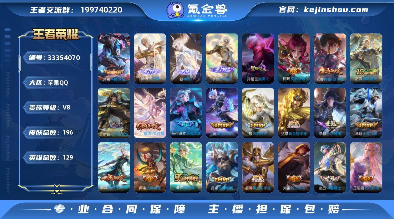 【c4287】苹果Q-V8-【特价出售,永久包赔】低场次!典韦省标!吕布典藏!3无双!云樱马年限定!15按键!永恒钻石II段位-129英雄-196皮肤-1典藏皮肤-3无双-21传说-61史诗 【英雄全皮】:孙权全皮,大司命全皮,敖隐全皮,空空儿全皮,影全皮 【荣耀典藏】:吕布千魇归渊 【无双皮肤】:孙悟空无相,铠神罪,李白碎月剑心 【传说皮肤】:阿轲罗刹妄海,云缨神骥越千峰,后羿神树通天,大司命死亡执政官,虞姬愿照岁时盈,桑启鸣野蒿,典韦战鼓燎原,赵云乘龙铭钟鼎,澜逐花归海,吕布怒海麟威,马可波罗深海之息,马超无双飞将,赵云淬星耀世,王昭君乞巧织情,镜炽阳神光,虞姬启明星使,李信一念神魔,刘备时之恋人,张良黄金白羊座,达摩黄金狮子座,后羿黄金射手座 【限定皮肤】:虞姬夏日便利店,姜子牙天穹之誓,狄仁杰阴阳师,赵云皇家上将,赵云引擎之心,赵云百木心枪,嬴政优雅恋人,元歌无心,马可波罗深海之息,狄仁杰魔术师,项羽海滩派对,关羽冰锋战神,韩信傲雪梅枪,孙悟空至尊宝,孙悟空大圣娶亲,孙悟空孙行者,虞姬启明星使,百里玄策原初追逐者,裴擒虎李小龙,米莱狄胡桃异想国,上官婉儿神器万象笔,蒙犽狂想玩偶喵,妲己灵卜魔法,李白碎月剑心,赵云乘...