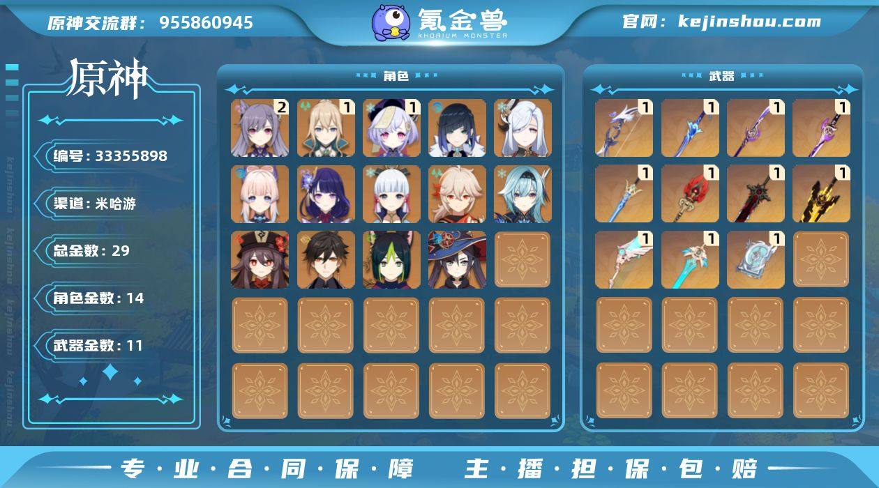 【AYY1141】58级/29黄/女主/14个五星角色/11个五星武器/枫原万叶/珊瑚宫心海/神里绫华/申鹤/钟离/优菈/雷电将军/夜兰/莫娜/胡桃/一命七七/提纳里/一命琴/二命刻晴/若水/天空之翼/四风原典/薙草之稻光/护摩之杖/无工之剑/狼的末路/雾切之回光/苍古自由之誓/天空之刃/波乱月白经津