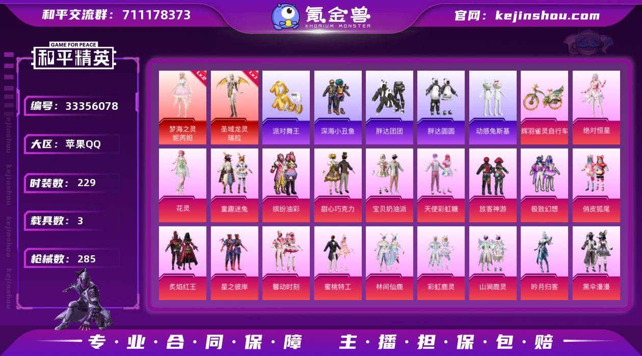 苹果 手Q-2神装-31粉装-17特效枪-3载具-15粉色飞行器-114827热力值-17王牌印记-229套装-285枪皮 【红色神装等级】:圣域龙灵-瑞拉(一级),梦海之灵-妮芮妲(二级) 【红色角色神装】:圣域龙灵-瑞拉,梦海之灵-妮芮妲 【热门品类】:粉装-童趣迷兔,粉装-缤纷油彩,套装-浪漫天命,套装-派对舞王,套装-深海小丑鱼,套装-胖达团团,套装-胖达圆圆,套装-动感兔斯基人偶服,套装-龟仙人,套装-潮萌小黄鸭,套装-暗影哥特,套装-糯粉咩咩,套装-软软马卡龙,套装-红熊茄茄 【粉色套装】:角色-绝对恒星,粉装-甜心巧克力,粉装-宝贝奶油派,粉装-天使彩虹糖,粉装-缤纷油彩,粉装-放客神游,粉装-极致幻想,粉装-俏皮狐尾,粉装-童趣迷兔,粉装-炙焰红王,粉装-星之彼岸,粉装-馨动时刻,粉装-蜜桃特工,粉装-林间仙鹿,粉装-彩虹鹿灵,粉装-山涧鹿灵,粉装-吟月归客,粉装-黑伞漫漫,粉装-蓝莓炮弹,粉装-酣梦娃娃,粉装-甜梦小狐,粉装-第五大道,粉装-蜜语绒猫,角色-美琪,角色-鸢尾晶梦,角色-千金淑猫,角色-花灵,角色-回旋牧梦使,角色-绛云霓裳,人物-小舞·灵珑,人物-小舞·雪昙 【粉色枪皮等级】:AKM-炫紫旋律(五级),AKM-暮色玫影(三级),SCAR-L-青春物语(六级),SCAR...