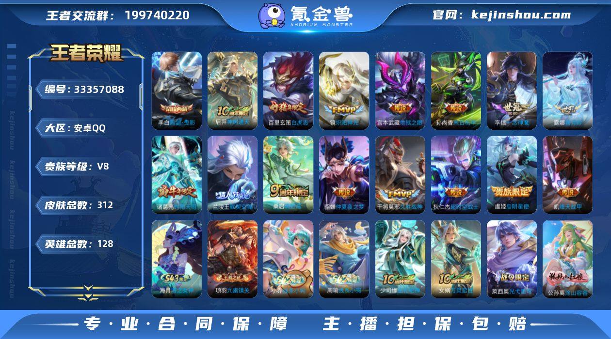 安卓Q-V8-至尊星耀III段位-128英雄-312皮肤-1典藏皮肤-15传说-93史诗 【英雄全皮】:孙权全皮,苍全皮,影全皮 【荣耀典藏】:李白鸣剑曳影 【传说皮肤】:后羿神树通天,桑启鸣野蒿,露娜霜月吟,兰陵王默契交锋,诸葛亮时雨天司,铠绛天战甲,镜炽阳神光,虞姬启明星使,李信一念神魔,干将莫邪久胜战神,百里玄策白虎志,貂蝉仲夏夜之梦,孙尚香末日机甲,宫本武藏地狱之眼,狄仁杰超时空战士 【限定皮肤】:白起狰,姜子牙天穹之誓,狄仁杰阴阳师,虞姬凯尔特女王,赵云皇家上将,赵云引擎之心,嬴政白昼王子,孙尚香蔷薇恋人,鲁班七号狮舞东方,鲁班七号乒乒小将,高渐离死亡摇滚,阿轲迷踪丽影,钟无艳王者之锤,孙膑妖精王,扁鹊炼金王,芈月重明,芈月白晶晶,吕布猎兽之王,吕布御风骁将,周瑜赤莲之焰,元歌云间偶戏,夏侯惇朔风刀,曹操烛龙,典韦穷奇,典韦蓝屏警告,马可波罗暗影游猎,狄仁杰魔术师,狄仁杰万华元夜,达摩沙漠行僧,项羽海滩派对,老夫子醍醐杖,韩信飞衡,兰陵王默契交锋,兰陵王驯魔猎人,花木兰青春决赛季,花木兰默契交锋,亚瑟潮玩骑士王,孙悟空至尊宝,牛魔御旌,后羿辉光之辰,后羿如梦令,虞姬霸王别姬,虞姬启明星使,钟馗神迹守卫,...