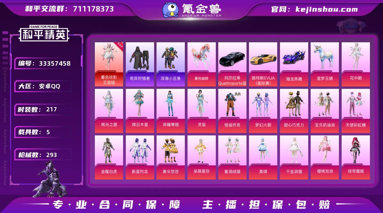 217套装/枪械14/装备411/载具5/战备201/王牌印记12/热力值104660/三级AKM-暮色玫影/四级SCAR-L-梦幻火箭/七级M416-五爪金龙/三级AUG-星梦奇缘/二级蜜獾-异瞳寒姬/六级Famas-天象三御/一级ACE32-萌骑漫游/四级UMP45-萌骑冒险/五级AKS-74U-森灵之息/五级Kar98K-巳巳如意/五级MK14-甜梦熊击/五级MK14-福马献瑞/五级DP-28-豹影疾电/五级破片手榴弹-贪吃小熊/一级暮色玫影-艾丽娅/暮色玫影-艾丽娅/怪诞乔克/梦幻火箭(新101)/浪漫天命/深海小丑鱼/小丑鱼/奇异狩猎者/暗影哥特/糯粉咩咩/Mark.06/红熊茄茄/甜心巧克力/宝贝奶油派/天使彩虹糖/金曜白虎/新星烈龙/黄伞悠悠/呆萌星弥/蜜语绒猫/美琪/千金淑猫/樱桃泡泡/绯穹魔姬/奇迹舞步-美琪/奇迹舞步-美雪/灵玺/异瞳寒姬/辉云木星/辉光之愿/花中眠/路特斯EVIJA(星际黄)/玛莎拉蒂Quattroporte(夜幕蓝)/海龙奔腾/星梦玉骢/暮色幽蹄/AKM-暮色玫影/SCAR-L梦幻火箭/M416五爪金龙/AUG星梦奇缘/蜜獾-异瞳寒姬/Famas-天象三御/ACE32-萌骑漫游/UMP45-萌骑冒险/AKS-74U-森灵之息/Kar98K-巳巳如意/MK14-甜梦熊击/MK14-福马献瑞/DP-28-豹影疾电/破片手榴弹-贪吃小熊/炫彩糖果飞行器/梦幻火箭飞行器/翩跹演武飞行器/沙丘之主天马飞行器/镜域双华-灵镜...
