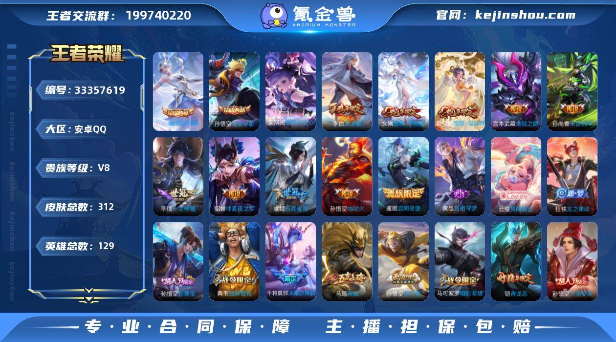 CHC40079 安卓Q-V8-荣耀黄金IV段位-129英雄-312皮肤-2典藏皮肤-1珍品传说-10传说-90史诗 【英雄全皮】:空空儿全皮 【荣耀典藏】:孙悟空全息碎影,伽罗最初的交响 【珍品传说】:安琪拉酷洛米之心 【传说皮肤】:女娲愿照千秋盛,蔡文姬愿照福禄聚,虞姬启明星使,李信一念神魔,虞姬云霓雀翎,貂蝉仲夏夜之梦,李白凤求凰,孙尚香末日机甲,宫本武藏地狱之眼,孙悟空地狱火 【限定皮肤】:白起狰,狄仁杰阴阳师,虞姬凯尔特女王,赵云皇家上将,妲己时之彼端,嬴政白昼王子,孙尚香蔷薇恋人,鲁班七号狮舞东方,庄周蜃楼王,庄周高山流水,高渐离死亡摇滚,阿轲迷踪丽影,孙膑妖精王,扁鹊炼金王,芈月重明,吕布猎兽之王,元歌云间偶戏,元歌无心,夏侯惇朔风刀,甄姬游园惊梦,曹操烛龙,典韦穷奇,典韦蓝屏警告,马可波罗暗影游猎,狄仁杰魔术师,狄仁杰万华元夜,达摩沙漠行僧,项羽海滩派对,老夫子醍醐杖,关羽冰锋战神,程咬金演武夺筹,露娜一生所爱,刘邦夺宝奇兵,韩信逐梦之影,韩信傲雪梅枪,王昭君凤凰于飞,兰陵王金庭之子,花木兰青春决赛季,亚瑟潮玩骑士王,孙悟空至尊宝,孙悟空大圣娶亲,孙悟空孙行者,牛魔御旌,后羿圣弓游侠,李元芳银河之约,李元芳...