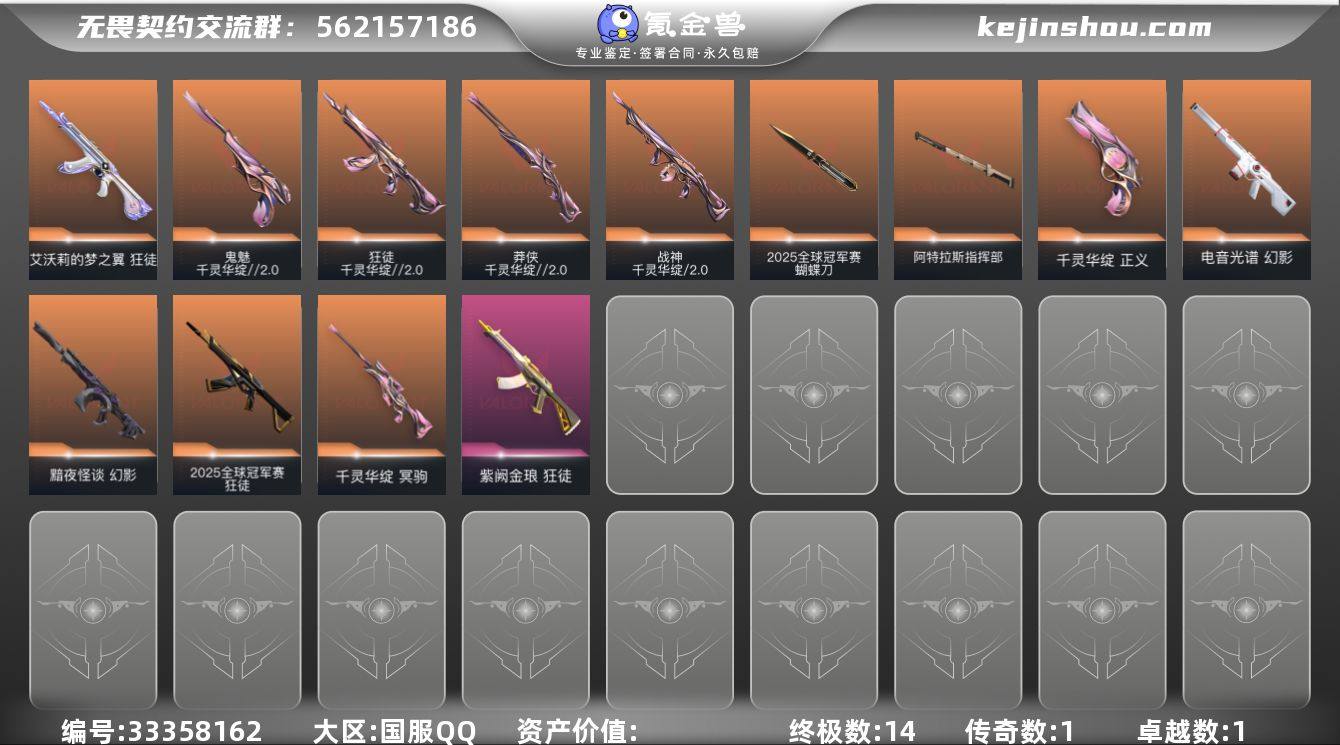L3290 【精品号】荆棘狂徒 黯夜幻影 紫金狂徒 莲花正义 镭切 莲花2.0套 莲花冥驹 25冠军套 电音幻影 猫猫狂徒 库存:30320 剩余VP:86剩余R点:10 段位:黄金1历史最高:黄金1