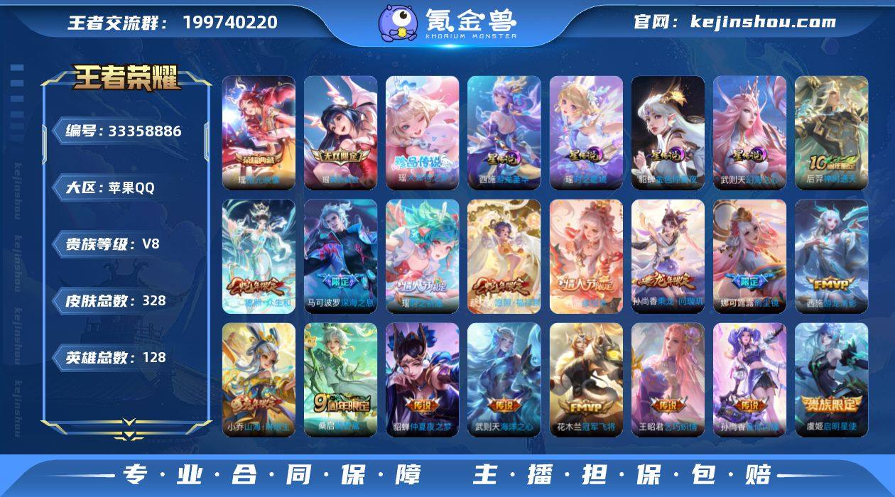 女生玩的英雄基本上都有标 v8 128英雄 328皮肤 瑶全皮 西施全皮 桑起全皮等