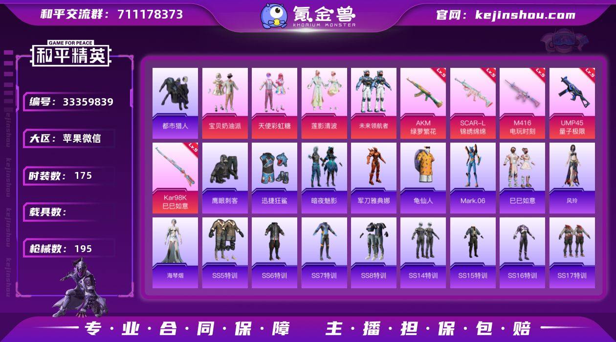 【LHPX1341】粉装4/粉枪5/套装175/枪皮195/热力值60052/历史最高段位:王牌印记20次/Lv:67/五级AKM-绿萝繁花/五级SCAR-L-锦绣绵绵/五级M416-电玩时刻/五级UMP45-量子极限/五级Kar98K-巳巳如意/都市猎人/军刀雅典娜/龟仙人/Mark.06/M416-星际漫游/宝贝奶油派/天使彩虹糖/莲影清波/未来领航者/AKM绿萝繁花/SCAR-L-锦绣绵绵/M416电玩时刻/UMP45量子极限/Kar98K-巳巳如意/银河战甲降落伞/甜心宝贝降落伞/至尊龙雀降落伞/蓝莓炮弹降落伞/垂柳戏鸭降落伞/暗夜鎏金降落伞/萌物绒绒降落伞/圣堂之誓降落伞/繁龙极客降落伞/江南烟雨降落伞/守护天翼降落伞/初号机 觉醒Ver.降落伞/千金淑猫降落伞/鬼刀降落伞/幻影飞狐降落伞/幻彩电音降落伞/巳巳如意/风玲/海琴烟/AKM-夜灯/AKM-江南烟雨/AKM-生命誓言/AKM-破晓战魂/AKM-萌趣颜团子/AKM-虎虎生威/AKM-霓虹街区/AKM-龙的传人/M16A4-幻世战舞者/M16A4-星际漫游/M16A4-甜心亚梦/SCAR-L-玉兔迎春/SCAR-L-甜蜜誓约/SCAR-L-红色方程式/SCAR-L-致命红樱/SCAR-L-银碳小老虎/SCAR-L-黄金龙骨/M416-仓鼠灰灰/M416-糯团青竹/M416-红色方程式/M416-蓝色火焰/GROZA-彩虹符号/GROZA-影袭/GROZA-黑色刀锋/AUG-天降萌叽/AUG-耀粉歌者/M762-天降萌叽/M762-奇...