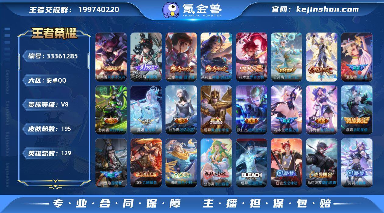【956407】V8 1典藏 1无双 14传说 129英雄 195皮肤 可二次 可修改实名 男号 【英雄全皮】敖隐全皮,空空儿全皮,孙权全皮,蚩奼全皮,苍全皮,大禹全皮 【稀有英雄】敖隐(小龙人),大司命,嬴政(始皇帝),韩信(韩跳跳),夏洛特(夏师傅),艾琳,橘右京(橘子),娜可露露(鸟人),不知火舞,赵云,金蝉(唐僧),戈娅 【荣耀水晶】杀手不太冷 【无双皮】离恨烟(公孙离无双) 【传说皮】异界灵契-花木兰,神骥·越千峰,神骥·鸣幻洲,云诺千山,黄金射手座,末日机甲-孙尚香(绿蚂蚱),超时空战士-狄仁杰,音你闪耀(rap皮),燃星之曲,浮生妄,记忆之芯(机甲兔),霜月吟 【珍宝阁皮】优雅恋人 【赛季/战令皮】古海寻踪(s33),海盐诗旅(s30),擒涛扼浪(s31),探海日志(s32),玲珑珍味,顽趣-梦奇,剑破天穹(s35),天穹祈灯(s34),天穹之誓(s36),混沌棋(s18),疑决卦(s19),醍醐杖(s20),原初探秘者(s21),万华元夜(s22),演武夺筹(s23),驱傩正仪(s24),千军破阵(s25),星空之诺,夺宝奇兵,迷踪丽影,西部大镖客-猪八戒,暗影游猎(游乐娃子),单词大作战,狂想玩偶喵,潮玩骑士王,云间偶戏,沙漠行僧(s26),金庭之子(s27),午后时光,大漠名商(s28),云中旅人(s29) 【史诗皮】百晓客,破空之剑,撼地雄心,茶境仙,星界战将,狼魂孤将,绮世丹青,战舞...