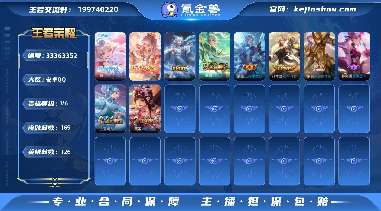 妹妹号 安卓Q 可二次 1无双1珍品传说7传说125英雄169皮肤 真我赫兹瑶 大耳狗之梦 续相思 愿照福禄聚 鸣野蒿 游龙清影 冠军飞将 黄金白羊座 海洋之心 拒霜思 冰冠公主 原初追逐者 梁祝 暗夜猫娘 诗语江南 黄忠百相守梦 战舞者 遇见神鹿 水晶猎龙者 暗隐猎兽者 猫狗日记女 金属风暴 地狱岩魂 特工魅影 青蛇 蔷薇恋人 舞动绿茵 逐浪之夏 心灵战警 心灵骇客 圣诞恋歌 幽灵船长 圣诞狂欢 星夜王子 节奏热浪 天才门将 偶像歌手 缤纷独角兽 鬼剑武藏 王者荣耀账号