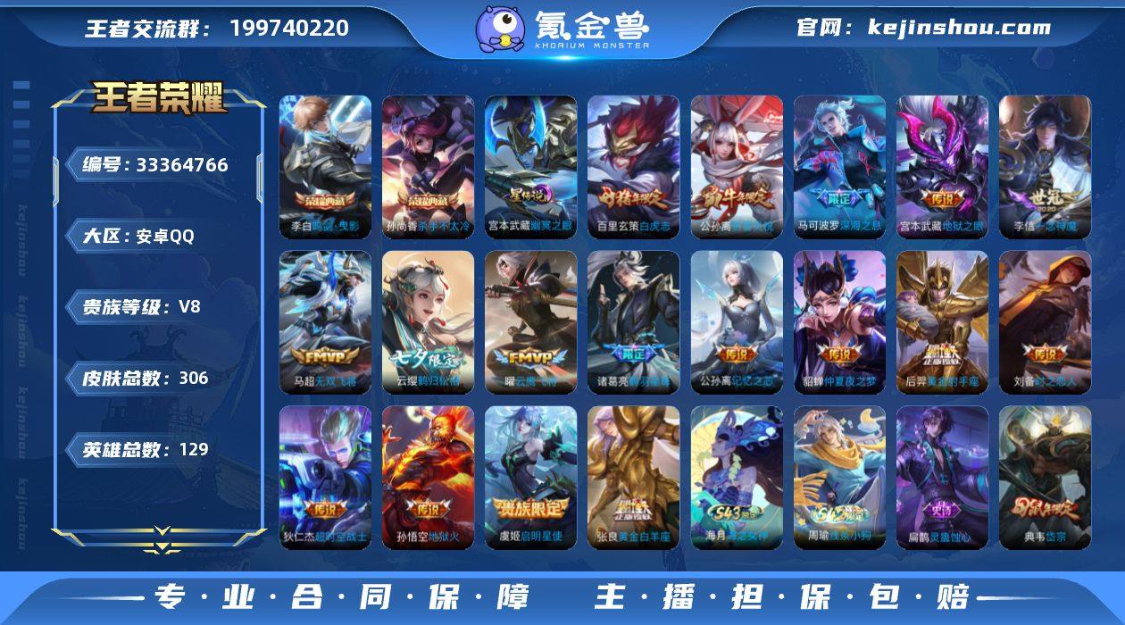 W16204,,,可立即换绑无需挂单养号,,,铭文满级,,典藏2,,传说17,,,星传说1,,,夺宝79,,安卓Q-V8-至尊星耀IV段位-129英雄-306皮肤-2典藏皮肤-17传说-79史诗 【荣耀典藏】:孙尚香杀手不太冷,李白鸣剑曳影 【传说皮肤】:云缨鹤归松栖,诸葛亮鹤羽星尊,公孙离记忆之芯,马可波罗深海之息,马超无双飞将,公孙离祈雪灵祝,虞姬启明星使,曜云鹰飞将,李信一念神魔,刘备时之恋人,张良黄金白羊座,百里玄策白虎志,后羿黄金射手座,貂蝉仲夏夜之梦,宫本武藏地狱之眼,孙悟空地狱火,狄仁杰超时空战士 【限定皮肤】:蒙犽顽岩魄,大乔绒语心约,姜子牙天穹之誓,杨戬破阵退雄兵,狄仁杰阴阳师,虞姬凯尔特女王,赵云皇家上将,妲己热情桑巴,嬴政白昼王子,阿轲迷踪丽影,扁鹊奇幻香踪,芈月重明,吕布猎兽之王,周瑜真爱至上,周瑜赤莲之焰,夏侯惇朔风刀,典韦穷奇,典韦岱宗,马可波罗深海之息,狄仁杰魔术师,达摩沙漠行僧,项羽海滩派对,老夫子醍醐杖,程咬金演武夺筹,刘邦夺宝奇兵,兰陵王驯魔猎人,兰陵王金庭之子,花木兰青春决赛季,孙悟空大圣娶亲,牛魔御旌,李元芳银河之约,李元芳云中旅人,虞姬启明星使,杨玉环遇见飞天,杨戬潮玩骑兵,哪吒逐...