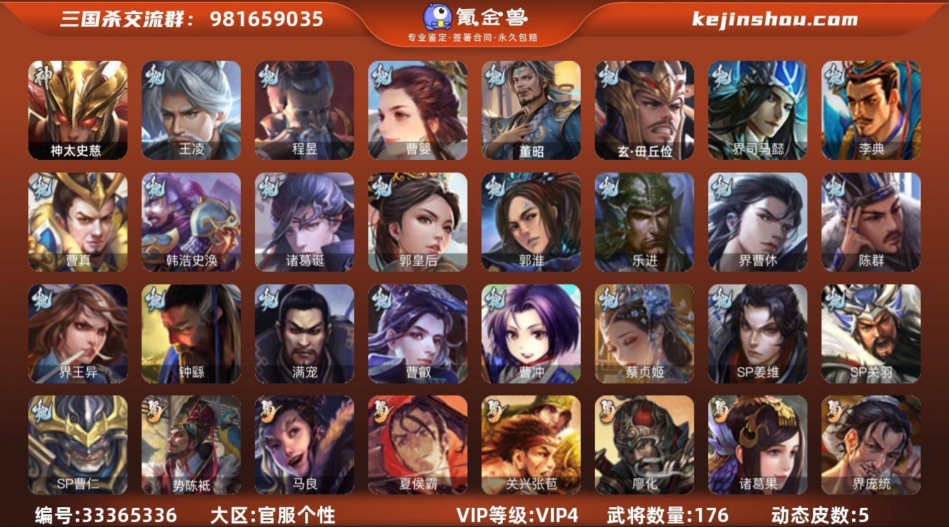 神太史慈,王凌,曹婴,程昱,左慈,刘焉,界李儒,SP关羽,SP曹仁,乐进,曹昂,诸葛诞,文聘,SP姜维,钟会,曹冲,郭淮,满宠,界王异,界曹操,界司马懿,界夏侯惇,界张辽,李典,曹真,韩浩史涣,陈群,曹叡,钟繇,司马朗,郭皇后,蔡贞姬,界曹休,玄毌丘俭,董昭,SP孙尚香,关银屏,夏侯霸,马良,关兴张苞,廖化,界马岱,关平,简雍,刘封,界法正,界关兴张苞,界刘备,SP徐庶,吴懿,周仓,张松,界伊籍,界庞统,张翼,邓芝,傅肜,糜夫人,彭羕,谋庞统,霍峻,诸葛果,甘夫人,势陈祗,孙茹,凌操,诸葛瑾,孙鲁育,程普,韩当,潘璋马忠,虞翻,界甘宁,界黄盖,界周瑜,界大乔,界陆逊,孙鲁班,孙登,潘濬,卫温诸葛直,孙邵,陈武董袭,蒋钦,谋韩当,谋周瑜,界孙休,张布,友庞统,伏完,刘协,界袁术,SP赵云,张宝,伏皇后,李儒,华雄,袁术,界华佗,公孙瓒,公孙渊,界庞德,张济,界刘表,星张郃,界公孙瓒,胡车儿,乐就,骥李典,大乔-珠玉琳琅(动态),孙寒华-蛇年限定(动态),李儒-业火毒计(动态),刘焉-雄踞益州(动态)