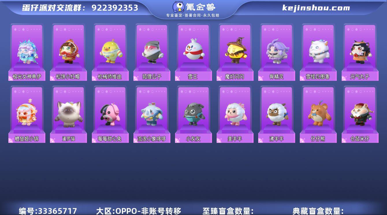 东东暹罗猫元气丸子魔灯闪闪流浪小象哆哆仓鼠米仔仔仔熊松饼小红帽 历史潮流:3万 段位:三阶鸡蛋 等级:47 性别:女 紫色套装数量:24 紫色套装:东东,暹罗猫,元气丸子,魔灯闪闪,流浪小象哆哆,莓莓甜心兔,鲤鱼姬小锦,小福袋天运,极光女神典伊,雪怪瓦图鲁,骨精灵,小演员露西,沸羊羊,美羊羊,小灰灰,吟游诗人米亚,雪王,狐狸公子,机械师维迪,仓鼠米仔,仔仔熊,松饼小红帽 背饰:东东画板,孤岛之鲸,流火花环,奇乐龙龙,聚宝袋,锦鲤彩灯,皇家萨克斯,靠背座椅,森林鲁特琴,音浪星梦,小心地滑 玩具:2周年蛋糕