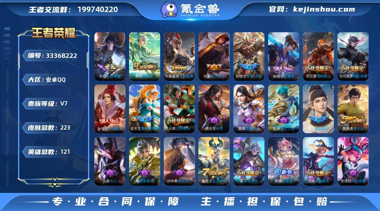 【V7 5传说 223皮肤 121英雄】市标猴子 干将莫邪 至尊宝 大圣娶亲 一念神魔,久胜战神,零号·赤焰,时之恋人(刘备),至尊宝,遇见飞天,大圣娶亲,赏金猎手,纤云弄巧,拒霜思,梁祝,猫狗日记(孙策),云间偶戏,无心,李小龙,原初追逐者,特工魅影,五谷丰年,修罗,暗影游猎,冰冠公主,乘风破浪,未来纪元(赵云),皇家上将,心灵骇客,功夫厨神,圣诞恋歌,摇滚巨星,德古拉伯爵,紫霞仙子,驭风魔法,冰雪圆舞曲,水果甜心,时之恋人(孙尚香),圣诞狂欢,星夜王子,星界游侠,鬼剑武藏,魔术师,鹰眼统帅,繁星吟游,逐浪之夏,暗隐猎兽者,地狱岩魂,金属风暴,青春决赛季,节奏热浪,心灵战警,缤纷独角兽,荣光圣徽,燃音魔法,百解令,江河有灵,地狱燃心,破空之剑,谪仙醉月,百相守梦,编号:QNNGT93