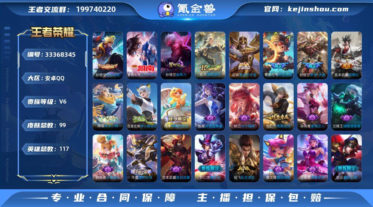 【精氪小号·江户川柯南·全息碎影·鲁班七号时之奇旅·零号赤焰·幽冥火·无二次包过】YXw23850-安卓Q-117英雄-99皮肤-6王者印记-70铭文-贵族积分1w【贵族6】【1典藏·1珍品·1星传说·5传说·7按键】【因赛季更新游戏段付以上号为准!】 【荣耀典藏】:孙悟空全息碎影 【珍品传说】:鲁班七号江户川柯南 【星元皮肤】:孙悟空幽冥火 【传说皮肤】:后羿神树通天,鲁班七号时之奇旅,宫本武藏惊梅引,孙悟空零号赤焰,后羿黄金射手座 【限定皮肤】:狄仁杰阴阳师,赵云皇家上将,孙尚香蔷薇恋人,鲁班七号时之奇旅,狄仁杰魔术师,项羽海滩派对,孙悟空零号赤焰,张良古海寻踪,鬼谷子天穹祈灯,刘邦剑破天穹,程咬金群星魔术团 【赛季限定】:张良古海寻踪,鬼谷子天穹祈灯,刘邦剑破天穹,东皇太一噬灭天穹,太乙真人谧流熔炉,钟馗虚灵犬护,甄姬逆浪荇歌,亚瑟荣光之誓,牛魔星界战将 【战令限定】:刘禅鸭鸭历险记,沈梦溪鸭鸭历险记,周瑜线条小狗 【史诗皮肤】:周瑜线条小狗,百里玄策罗小黑战记,刘禅鸭鸭历险记,牛魔星界战将,钟馗乐园奇幻夜,狄仁杰鹰眼统帅,蔡文姬舞动绿茵,兰陵王暗隐猎兽者,张飞乱世虎臣,刘禅绅士熊喵,妲己女仆咖啡,嬴政摇滚巨星,孙尚香水果甜心,...