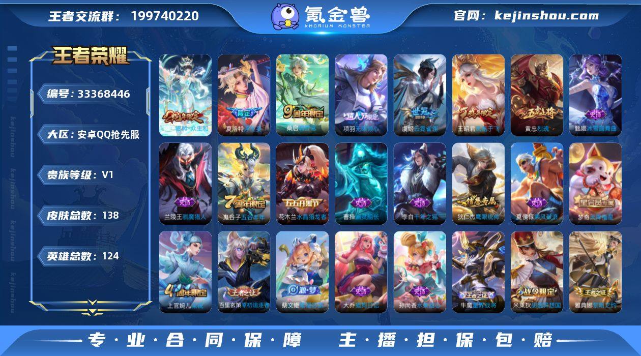 【抢先服】【店铺主推·1.1W大国项羽·准万战小国王昭君·1大国5小国·浮生妄·项羽无限倾心·愿照众生和·云霓雀翎·凤凰于飞·可二次】YXw22808-安卓Q-124英雄-138皮肤-9王者印记-194铭文-贵族积分0w【贵族1】【5传说】【因赛季更新游戏段付以上号为准!】 【传说皮肤】:妲己愿照众生和,桑启鸣野蒿,夏洛特浮生妄,项羽无限倾心,虞姬云霓雀翎 【限定皮肤】:姜子牙天穹之誓,狄仁杰阴阳师,赵云皇家上将,高渐离玩趣恶龙,周瑜赤莲之焰,夏侯惇朔风刀,狄仁杰万华元夜,达摩星际陆战队,达摩沙漠行僧,项羽海滩派对,项羽无限倾心,老夫子醍醐杖,程咬金演武夺筹,王昭君凤凰于飞,兰陵王驯魔猎人,兰陵王金庭之子,张飞虎魄,李元芳银河之约,李元芳云中旅人,钟馗驱傩正仪,雅典娜黎明之约,蔡文姬繁星吟游,鬼谷子原初探秘者,鬼谷子五谷丰年,黄忠烈魂,百里玄策原初追逐者,弈星混沌棋,梦奇天降福星,沈梦溪星空之诺,沈梦溪大漠名商,明世隐疑决卦,裴擒虎擒涛扼浪,米莱狄胡桃异想国,盾山御銮,上官婉儿梁祝,鲁班大师探海日志,桑启海盐诗旅,夏洛特浮生妄,张良古海寻踪,蒙犽百解令,鬼谷子天穹祈灯,鲁班七号蔬乡物语,李元芳蔬乡物语,刘邦剑破天穹 【年限皮肤】:王...