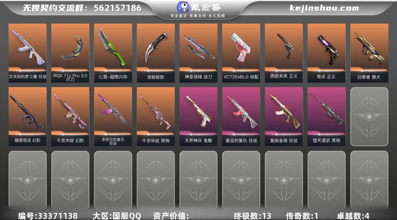 【956477】【英雄】:幻棱,炼狱,维斯,暮蝶,钛狐,壹决,铁臂,捷风,雷兹,幽影,不死鸟,贤者,猎枭,蝰蛇,零,芮娜,奇乐,尚勃勒,霓虹,斯凯,夜露,星礈,K/O,海神,盖可,黑梦,钢锁 【近战武器】:近战武器-RGX 11z Pro//3.0 爪刀,近战武器-鬼丸国纲,近战武器-超限闪存 匕首,近战武器-诡秘蛇影 军刀,近战武器-神圣领域 战刀 【狂徒】:狂徒-多弥尔的复仇,狂徒-艾沃莉的梦之翼,狂徒-盖亚的复仇,狂徒-紫阙金琅,狂徒-诡秘蛇影 【幻影】:幻影-黯夜怪谈,幻影-千灵华绽,幻影-超限闪存,幻影-神圣领域,幻影-末日之翼 【戍卫】:戍卫-浮光跃金,戍卫-月球哨兵,戍卫-折光棱晶 【獠犬】:獠犬-归零者,獠犬-神圣领域,獠犬-模拟赫兹,獠犬-逆冲蛮牛 【冥驹】:冥驹-千灵华绽,冥驹-堕天遗武,冥驹-荒土机兵,冥驹-模拟赫兹,冥驹-星云暗涌 【飞将】:飞将-末日之翼 【莽侠】:莽侠-超限闪存,莽侠-诡秘蛇影,莽侠-月球哨兵 【战神】:战神-神圣领域,战神-浮光跃金 【奥丁】:奥丁-末日之翼 【判官】:判官-诡秘蛇影,判官-纳米打击x 【雄鹿】:雄鹿-模拟赫兹,雄鹿-逆冲蛮牛,雄鹿-月球哨兵 【骇灵】:骇灵-荒土机兵,骇灵-无限竞技,骇灵-浮光跃金,骇灵-星...