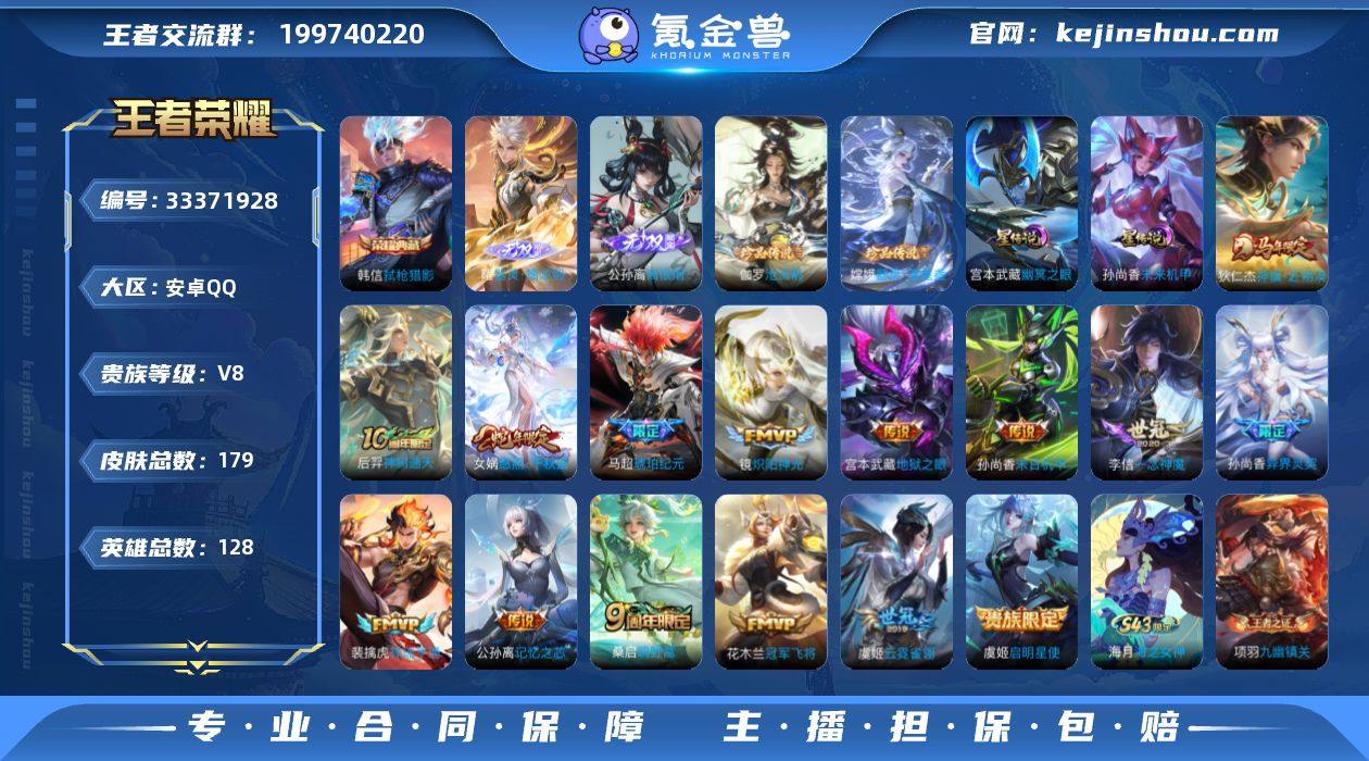 【高性价比·器灵螭龙剑·离恨烟·弑枪猎影·器灵落星盏·沧流箭·马超琥珀纪元·孙尚香异界灵契·虎祥瑞亨通·埋骨钱·天骥开鸿天幕·可二次】YXw23947-安卓Q-128英雄-179皮肤-6王者印记-40铭文-贵族积分5w【贵族8】【1典藏·2无双·2珍品·2星传说·15传说·1天幕·14按键】【因赛季更新游戏段付以上号为准!】 【英雄全皮】:孙权全皮,敖隐全皮,空空儿全皮,影全皮 【荣耀典藏】:韩信弑枪猎影 【无双皮肤】:曜器灵螭龙剑,公孙离离恨烟 【珍品传说】:伽罗沧流箭,嫦娥器灵落星盏 【星元皮肤】:孙尚香未来机甲,宫本武藏幽冥之眼 【天幕】:天骥开鸿天幕 【传说皮肤】:狄仁杰神骥赴朔漠,后羿神树通天,女娲愿照千秋盛,裴擒虎祥瑞亨通,桑启鸣野蒿,马超琥珀纪元,公孙离记忆之芯,孙尚香异界灵契,镜炽阳神光,虞姬启明星使,李信一念神魔,虞姬云霓雀翎,花木兰冠军飞将,孙尚香末日机甲,宫本武藏地狱之眼 【限定皮肤】:公孙离离恨烟,暃埋骨钱,虞姬夏日便利店,姜子牙天穹之誓,狄仁杰阴阳师,赵云皇家上将,妲己时之彼端,孙尚香异界灵契,元歌无心,马可波罗山海玄木吟,狄仁杰魔术师,项羽海滩派对,韩信傲雪梅枪,虞姬启明星使,百里玄策原初追逐者,公孙离蜜橘之夏,西施玲...